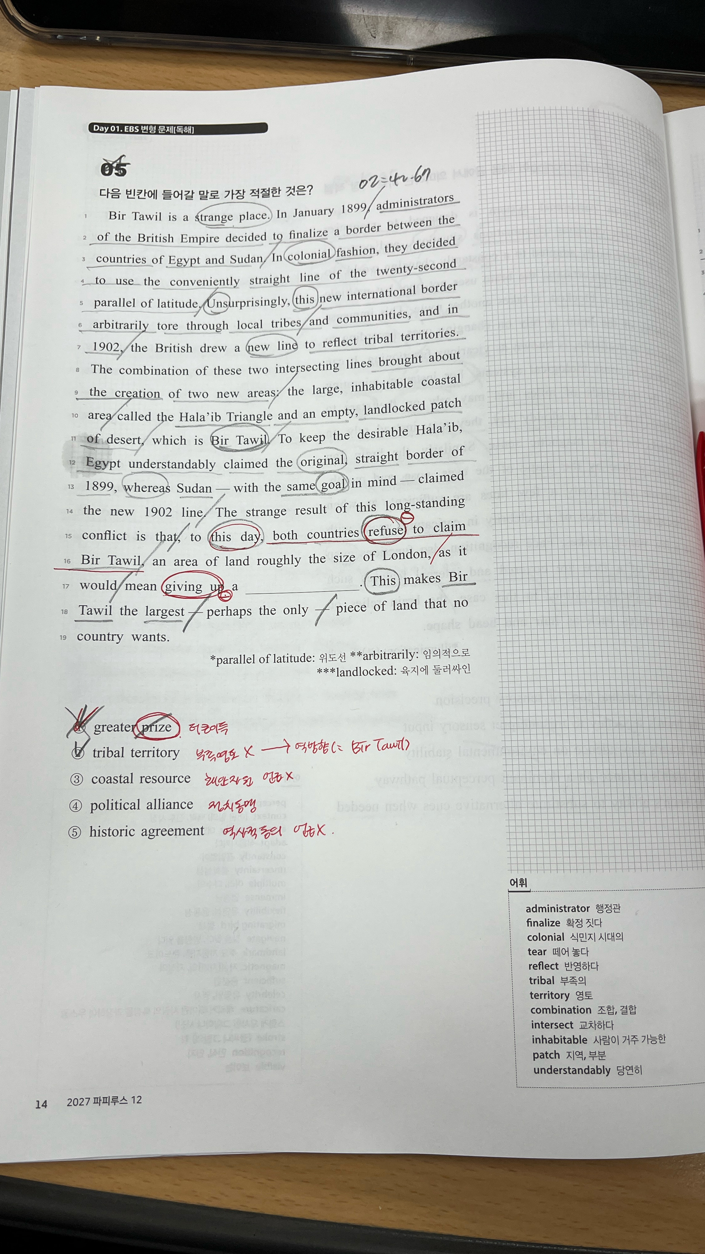 파피루스 12주차 day1 5번문제에서 답이 빈칸문장에서 bir tawil 을 두 국가 모두 포기하고 더큰 이득을 포기한다고 나와있는데 여기서 더 큰 이득이 무엇을 의미하는건지 모르겠습니다