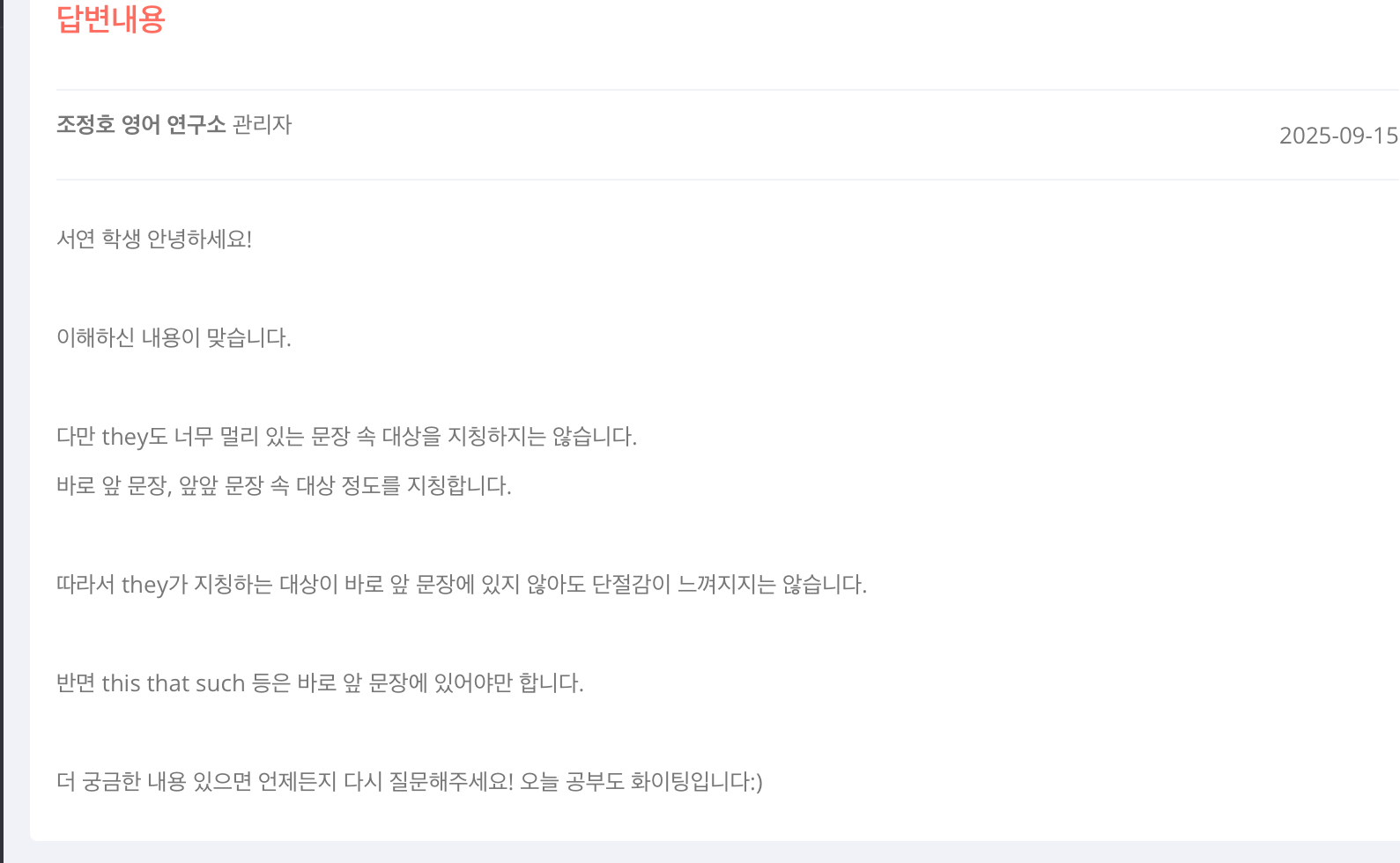 이전질문에선 This these는 앞문장에 없어도 그 앞에 가리킬만한게 있다면 단절의근거로 사용하면 안된다고 하셨는데