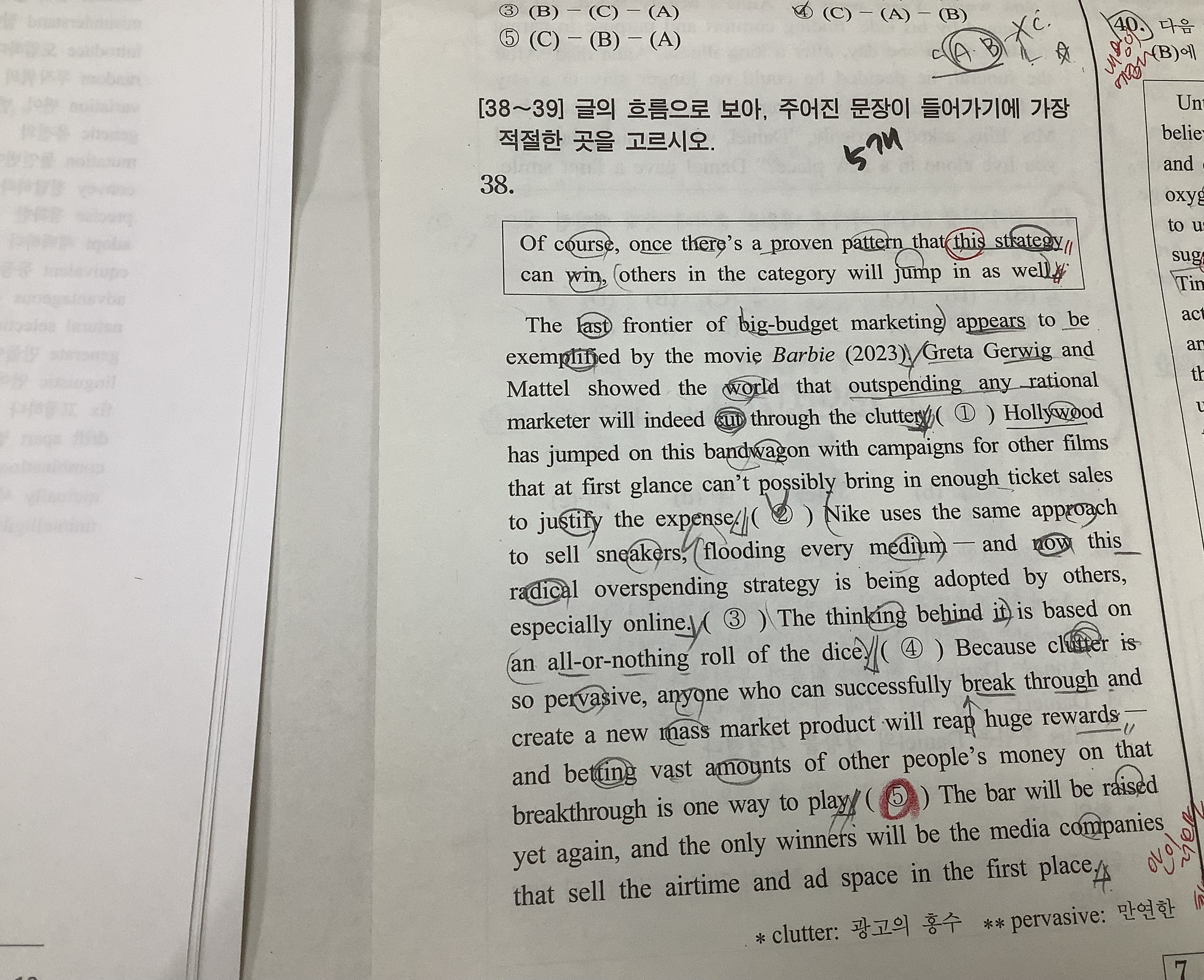 근데 동그라미 2번의 앞 뒷 문장에서 gap이 느껴지진 않지만, 주어진 뭄장이 거기 들어갔을 때 , 아 ‘this strategy'는 할리우드의 캠페인을 말하는 것이고, ’others'는 뒤에 나이키로 구체화해서 설명하는 구나 라고 생각해서 2번을 했습니다 ! 제 생각이 왜 틀린건가요??