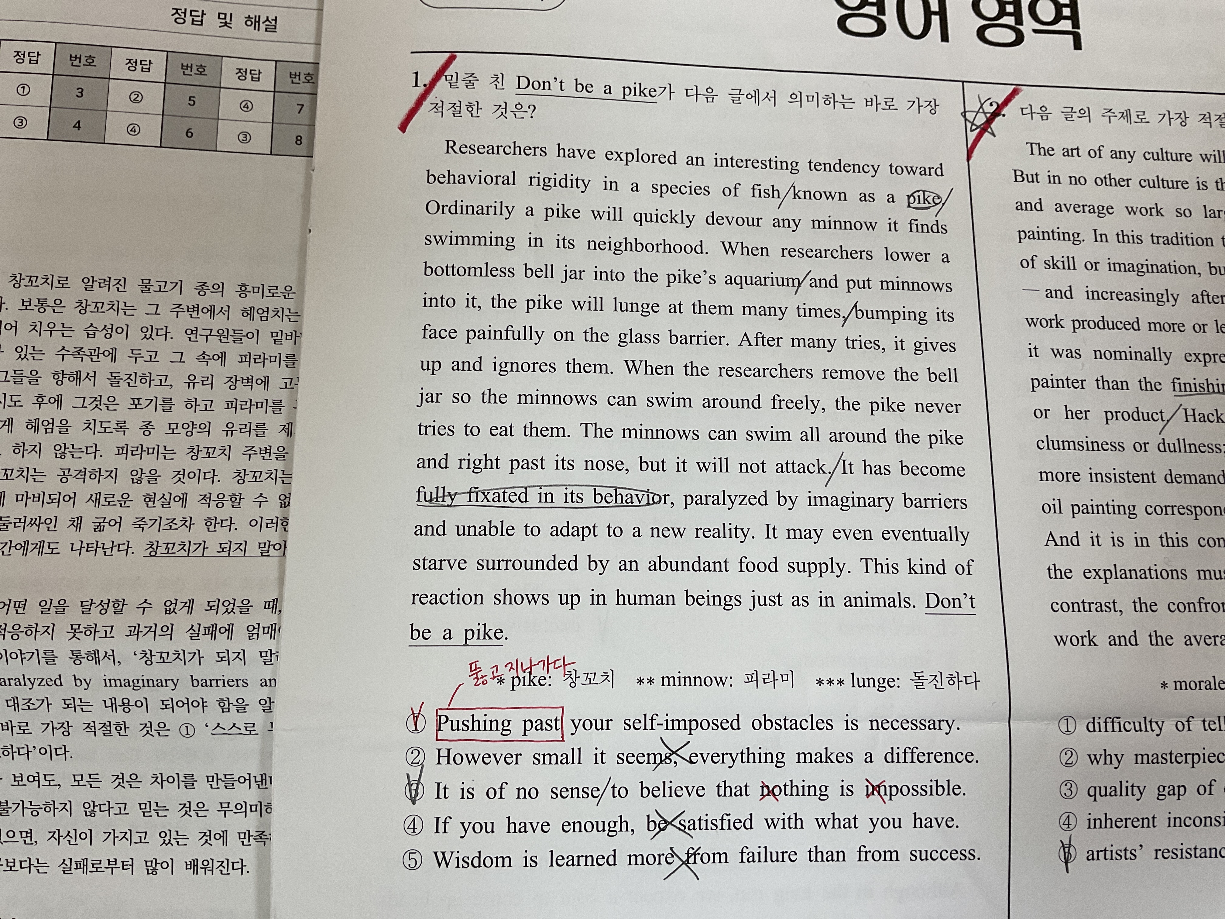 1번선지에 pushing past를 안읽어서 역방향이라 생각하고, 장애물을 지나가라는 내용과 비슷한 내용으로 모든것이 가능하다는 내용의 3번을 선택했는데, 3번을 소거할 수 있는 이유가 뭔가요?