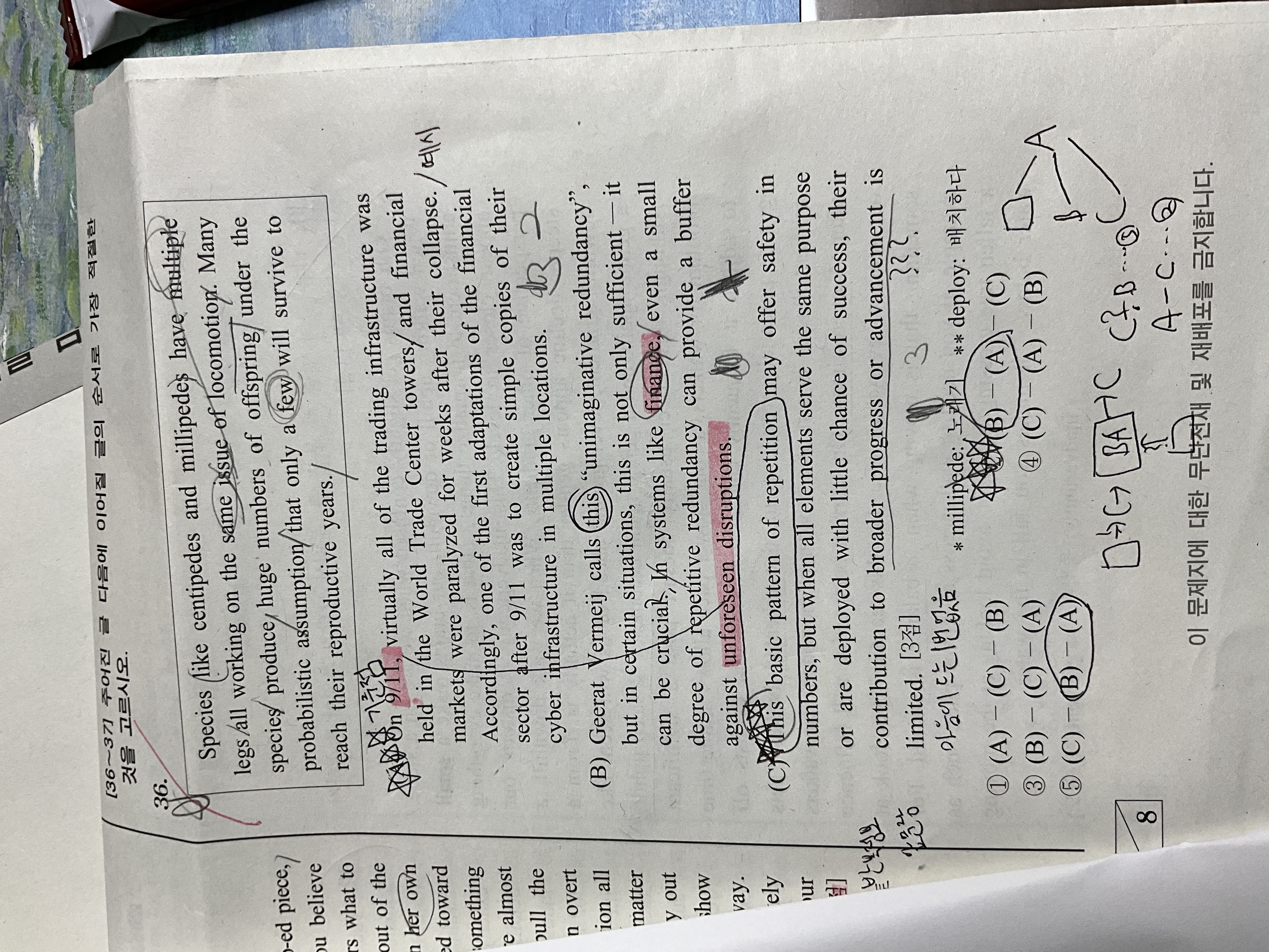 서바 13회 36번 질문합니다. 선생님이 수업시간에 말씀하신대로 BA는 연결했는데, C를 앞이나 뒤에 연결하며 읽어보았을때 BAC도 말이 된다고 생각해 2번을 했는데..수업시간에 create copies가 this basic pattern of repetition과 연결될 수 없어서 5번이라 하셨는데..저는 아무리 읽어봐도 이 둘이 어색하지 않아서요..