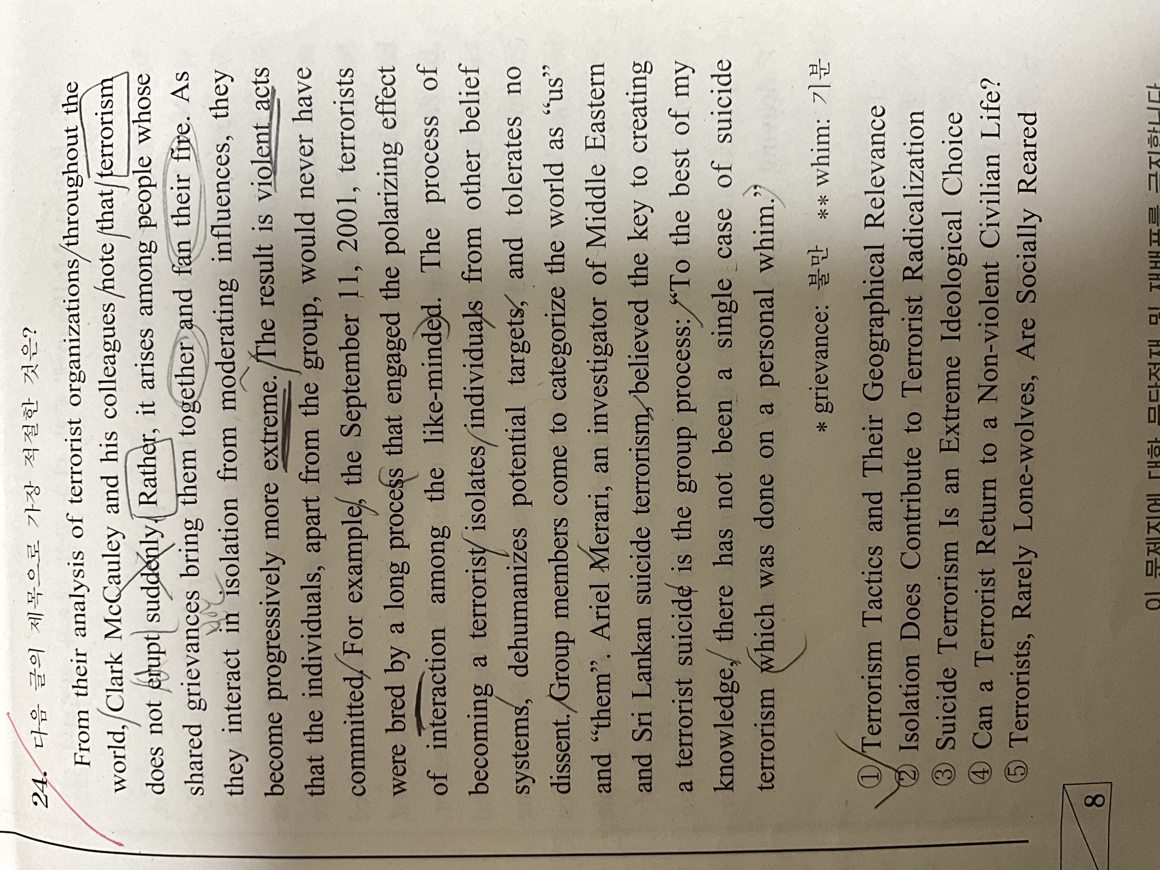 서바 13회 24번 왜 2번 선지가 틀렸는지 모르겠습니다.. 글의 전반적인 내용은 집단이 격리(고립)되면서 더 극단적인 행동을 한다는 내용 같은데, 그러면 2번 선지가 5번 선지보다 적절하지 않나요..?