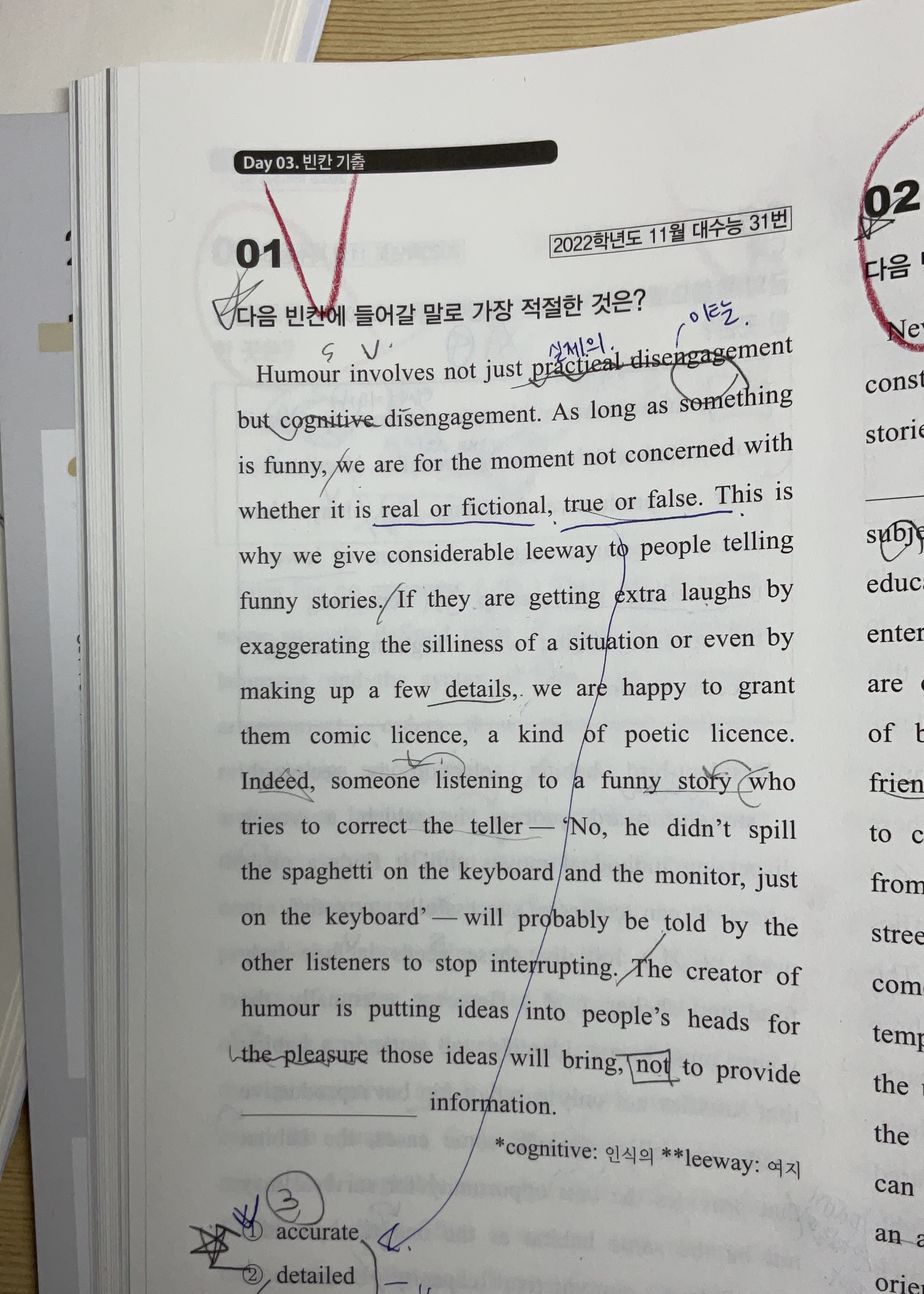 몇 가지 세부 사항을 꾸며서라도 추가 웃음을 얻고 있다면~부분을 통해서 빈칸에 detailed가 들어간다고 생각할 수 없을까요?