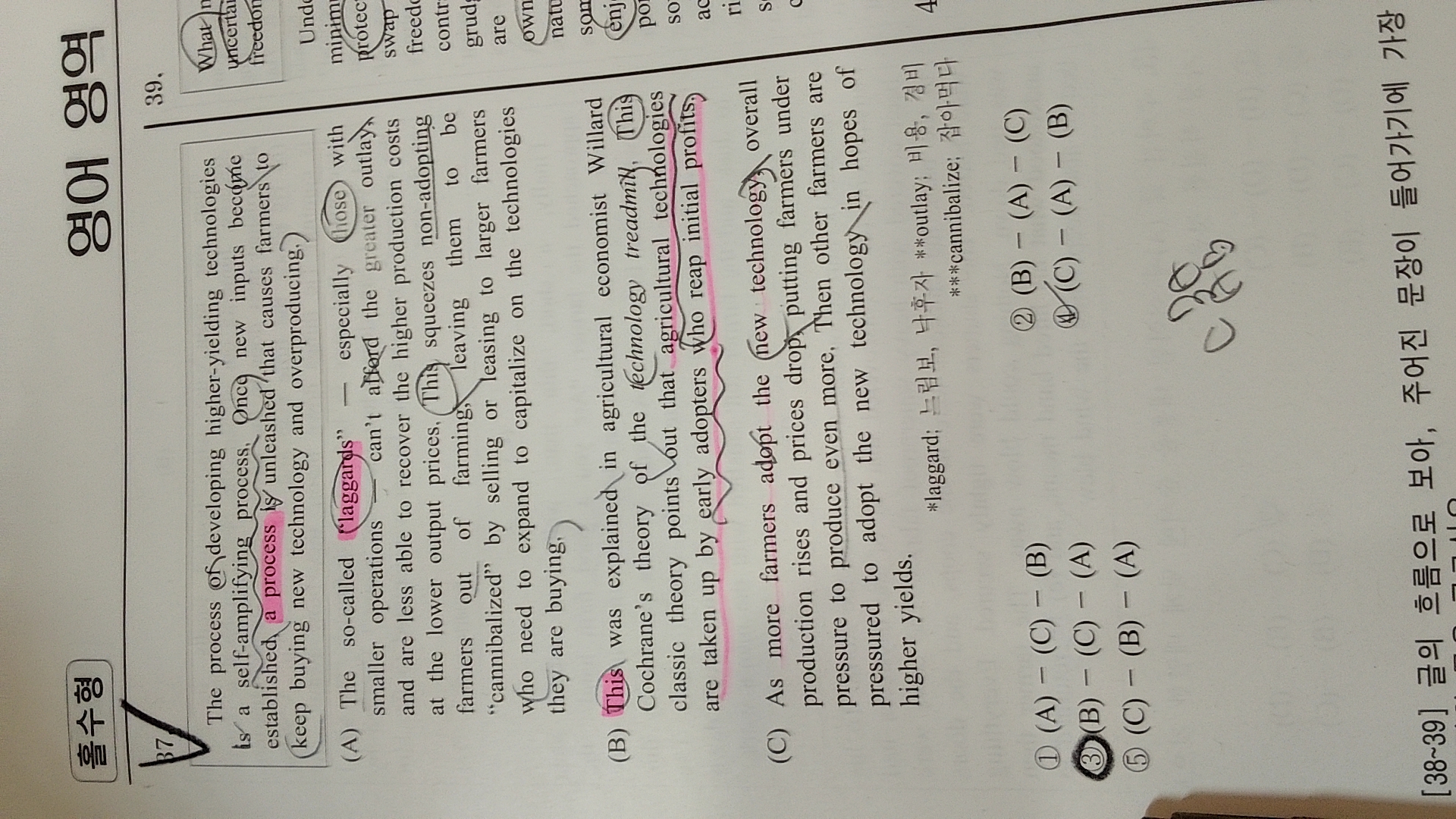 B의 This와 그 뒤에 이어지는 내용이 CA를 통합적으로 설명해준다고 생각해서 CA를 묶고 그 뒤에 B를 연결했는데, 왜 B가 맨앞 순서로 가야하는지 잘모르겠습니다. A와 B가 이어지지 않는 근거가 뭔가요??