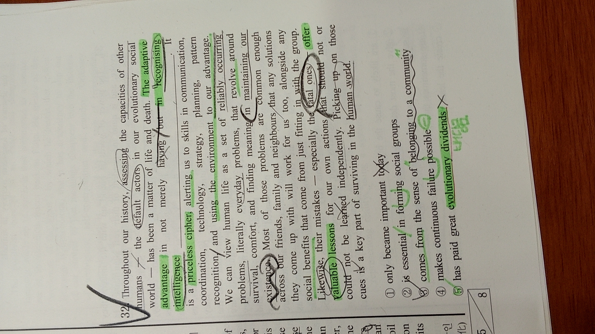 Social benefits that comes from fiting in with group, valuable lesson ~ could not be learned independently 를 보고 3번 선지를 답으로 골랐는데, 어떤 방식으로 근거를 잡아야 5번을 답으로 할 수 있는지 잘 모르겠습니다. 빈칸 근처에서 답의 근거를 찾아보려고 했는데, 근거가 잘안보여서요..