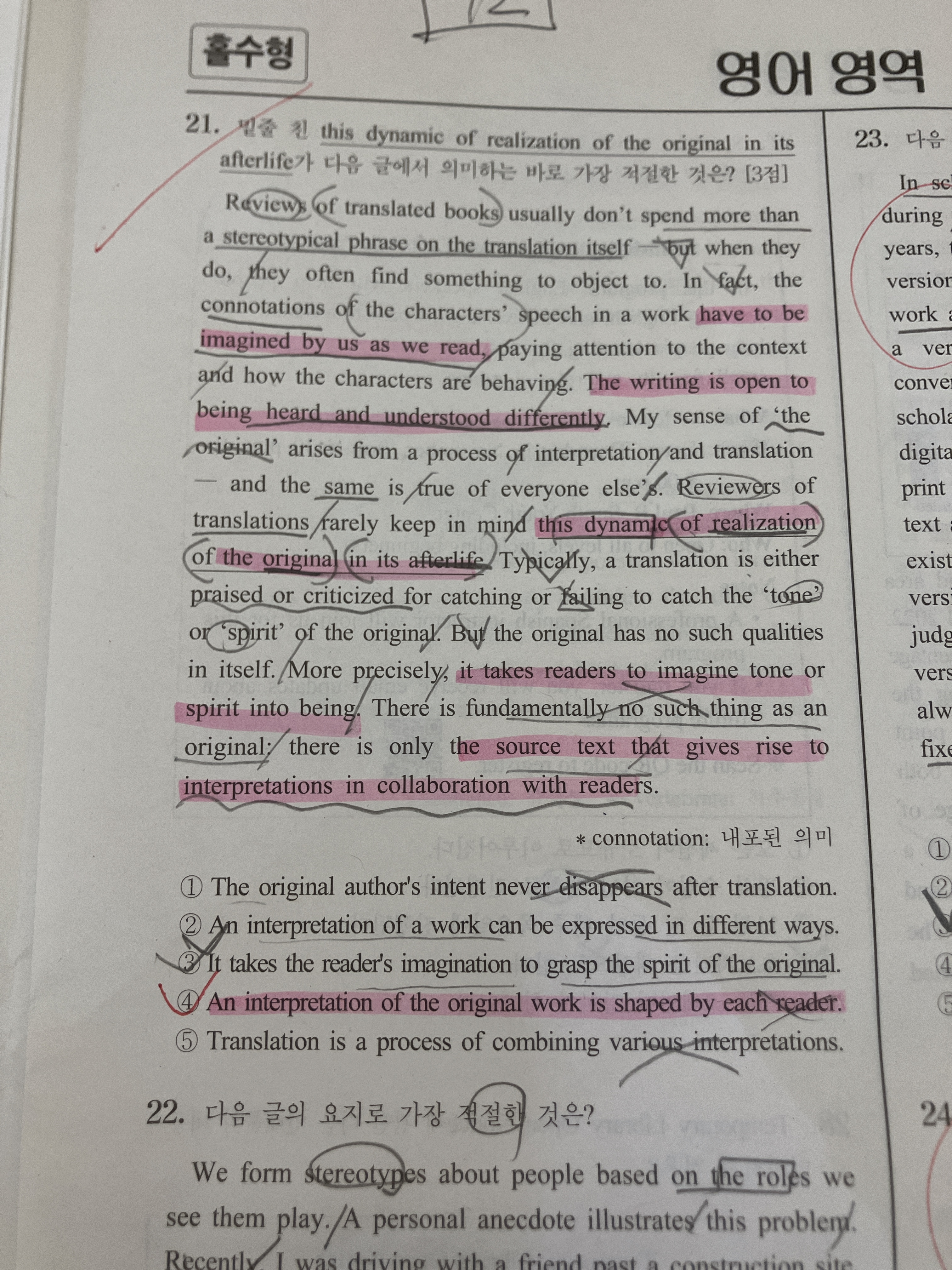 ?->아 그녀는 남자에게 말하지 않아도 그가 알길, 혹은 그녀의 마음에 공감해주길 바라는구나! (말로 다 표현할 수 없는 감?이 있었어요. 밑줄 문장을 읽고) 그래서 4,5번을 고민했는데요, 이 문제에서 4번을 지우고 5번을 남길 수 있는 방법을 잘 모르겠어서 질문 남깁니다