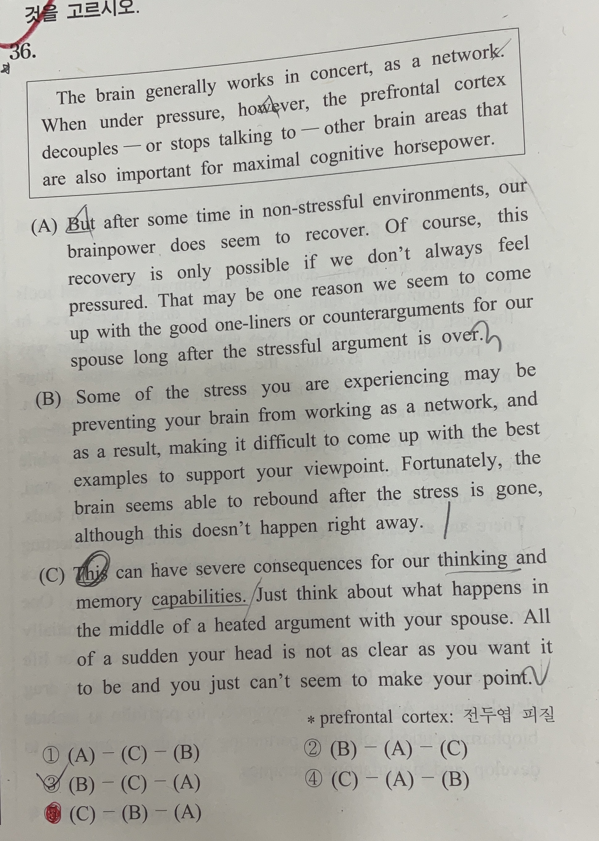 그리고 문제 풀이 순서를 어떻게 잡아야 할지 고민입니다. 원래는 듣기 하면서 21~24 제외하고 30번까지 풀고 21~24, 빈순삽, 나머지 순으로 해결을 하는데요. 마지막에 10분 남았다는 안내가 나오고서부터 글이 잘 안 읽힙니다 ㅜㅜ 그때부터 조급해지다보니 글도 눈에 안 들어오더라고요. 그래서 쉬운 번호를 뒤로 미루자고 생각하고 9평을 봤는데 쉬운 번호를 거의 10점 가까이 틀렸습니다. 빈순삽, 장문을 먼저 하고 35, 40, 43~35같은 번호를 뒤로 미루는 게 나을까요,,?