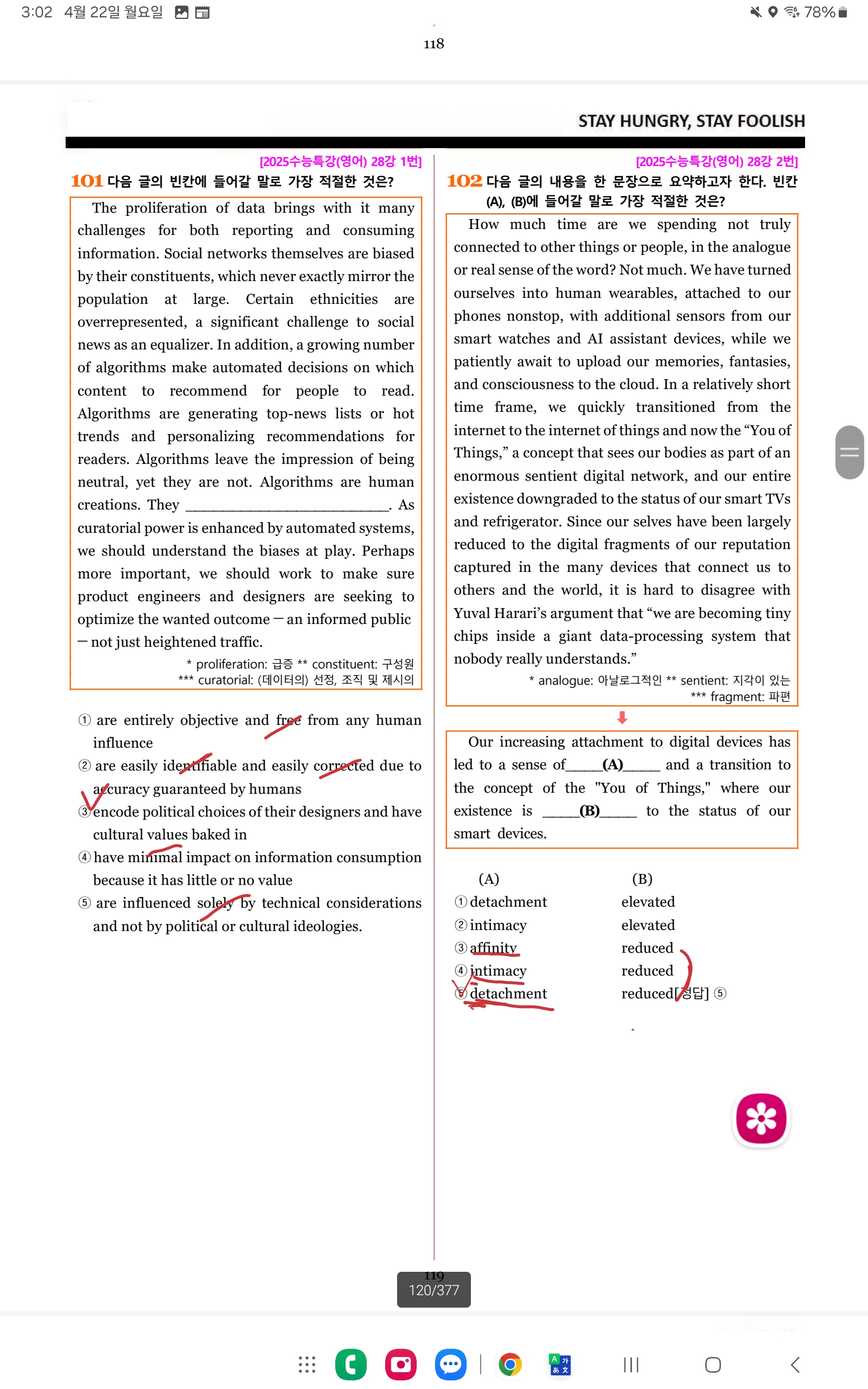 수능특강 변형문제 2회 102번 문제에서 A가 왜 detachment 인지 잘 모르겠습니다.. 지문으로보면 서로 연결되어 있으니 가까워지는 맥락의 단어가 들어가야할 것 같다고 생각했습니다
