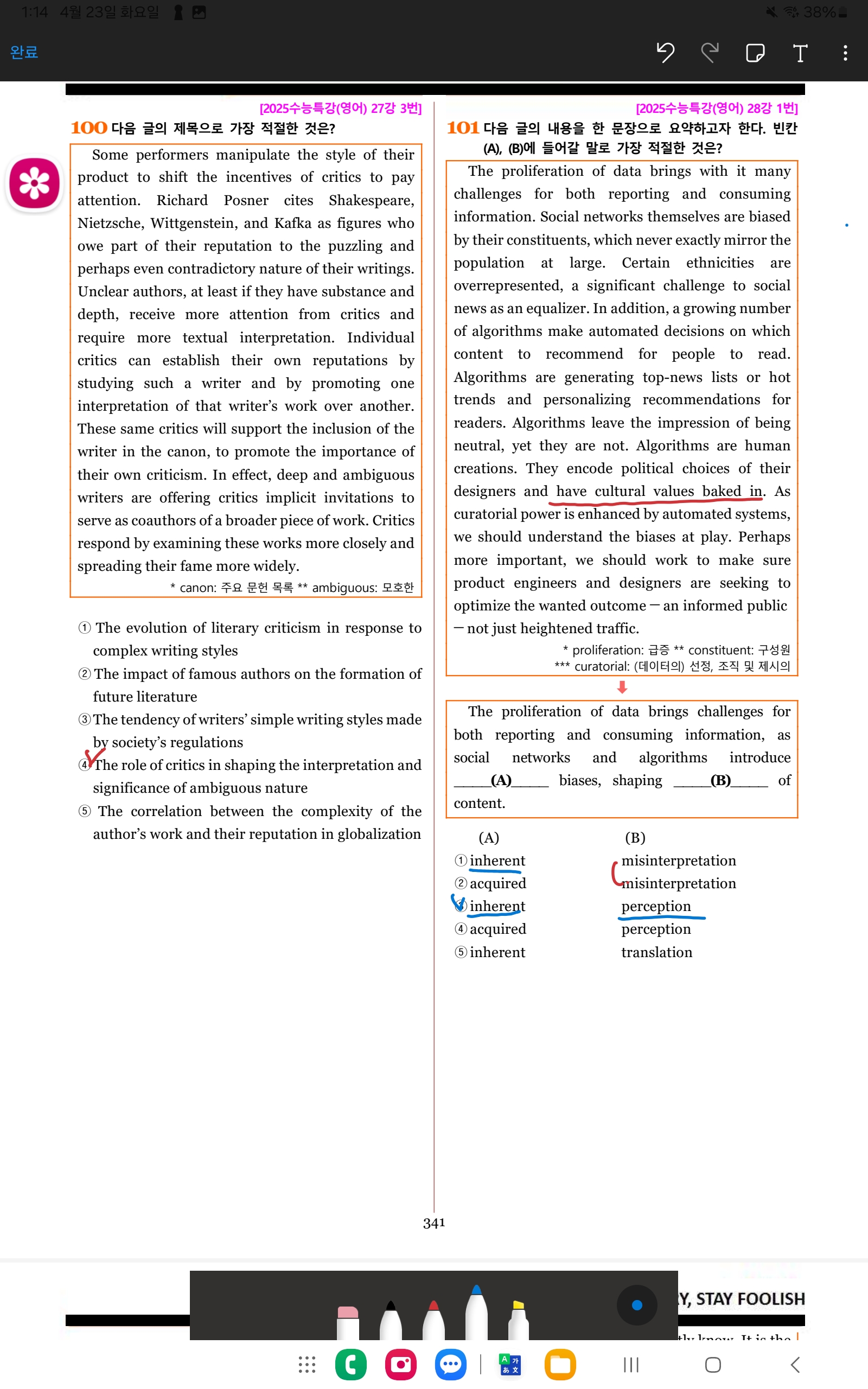수능특강 변형문제 5회 101번에서