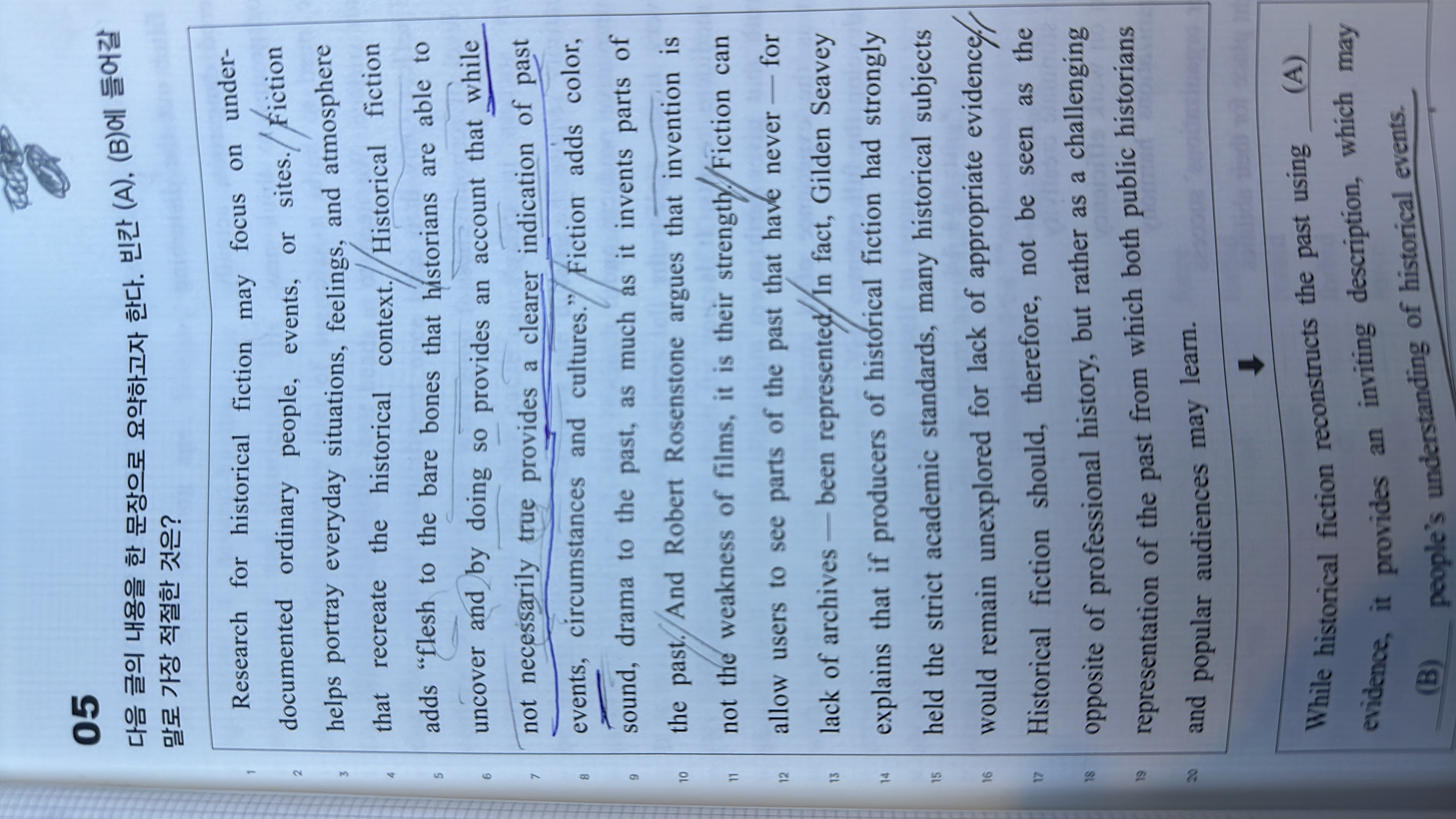 파란밑줄친 부분 제가 해석하면 반드시 사실이 제공하는건 아니다 명확한 가리킴을 과거의사건에대해 이렇게 되는데 해설지랑 달라서요