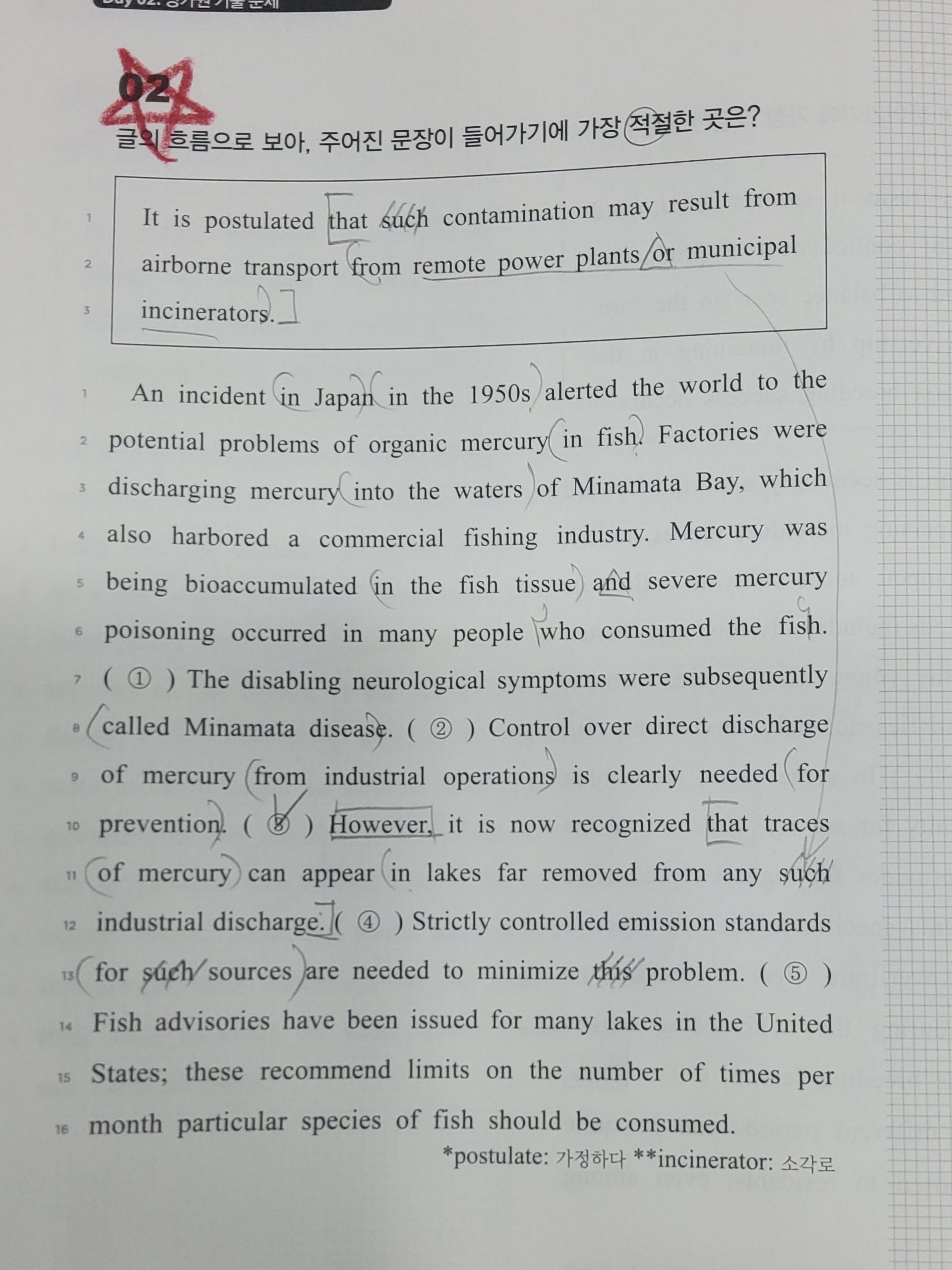 주어진 문장에서 remote power plants or municipal incinerators를 3번 문장 such industrial discharge로 연결해서 3번 답으로 가면 안되는 까닭을 모르겠습니다 ㅜㅜ