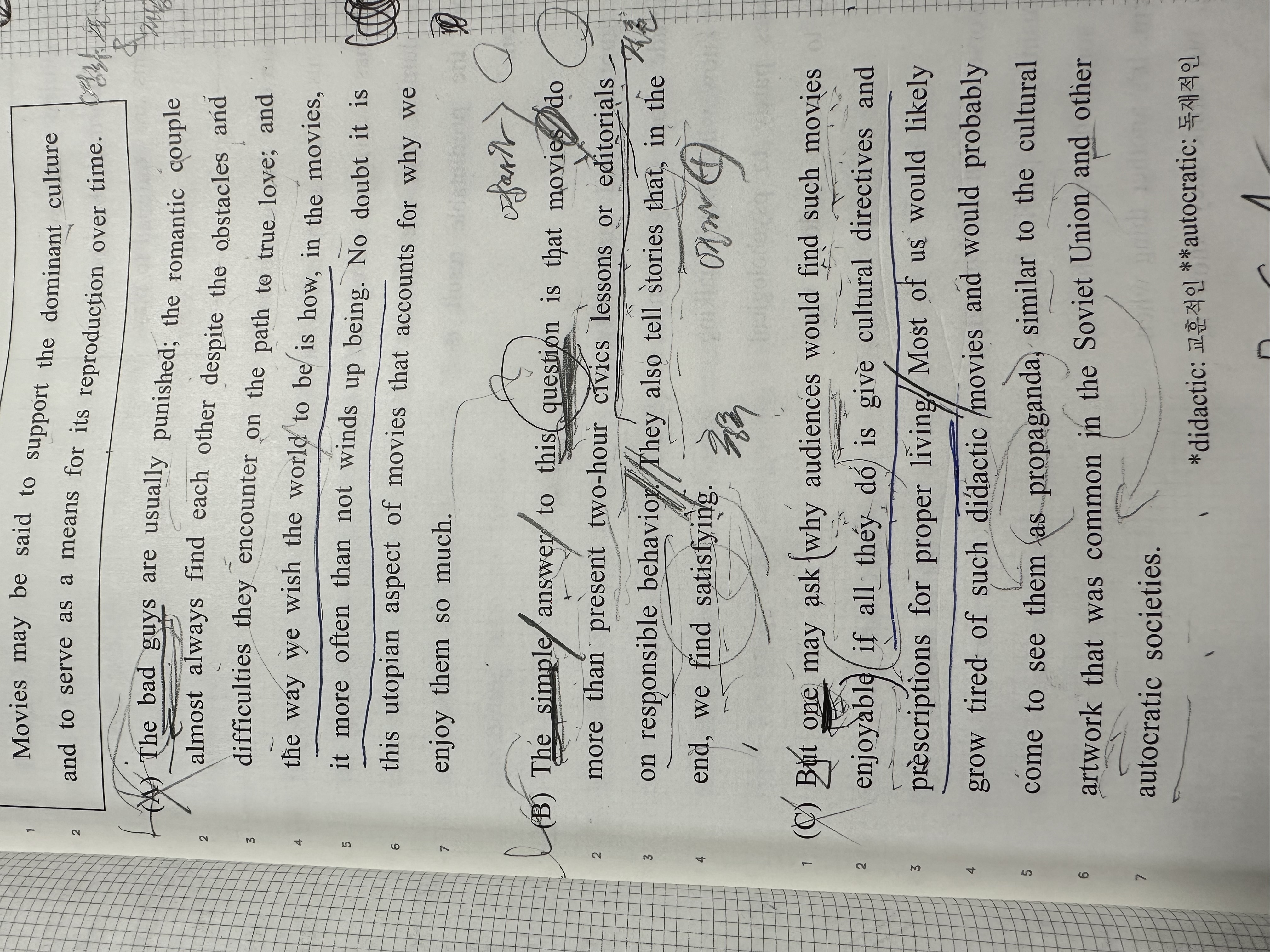 A 부붕 파란 밑줄이랑 C 부분 파란 밑줄 해석을못하겠어요 문장 구조랑 해석좀 끊어서 해주세요