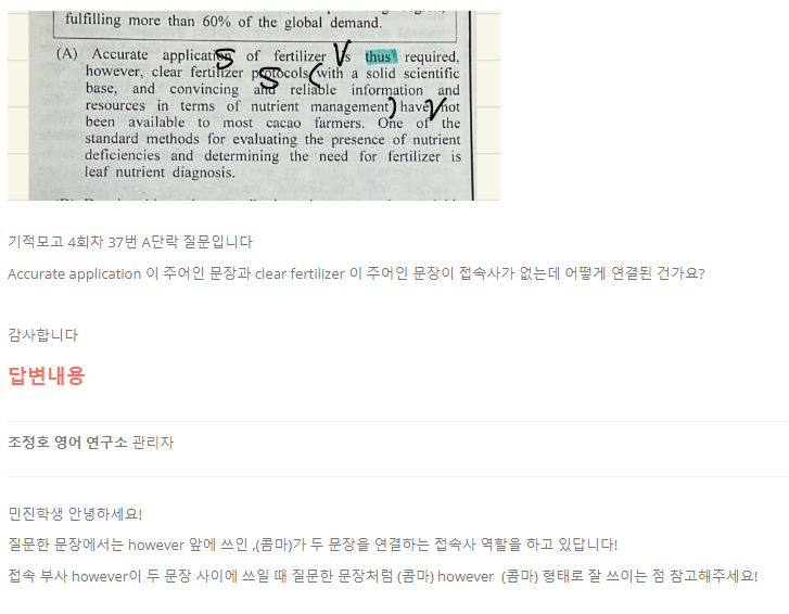 1. ,however, 은 삽인된 것으로 접속사가 아니라 접속부사(연결사)로 사용된 것 아닌가요?