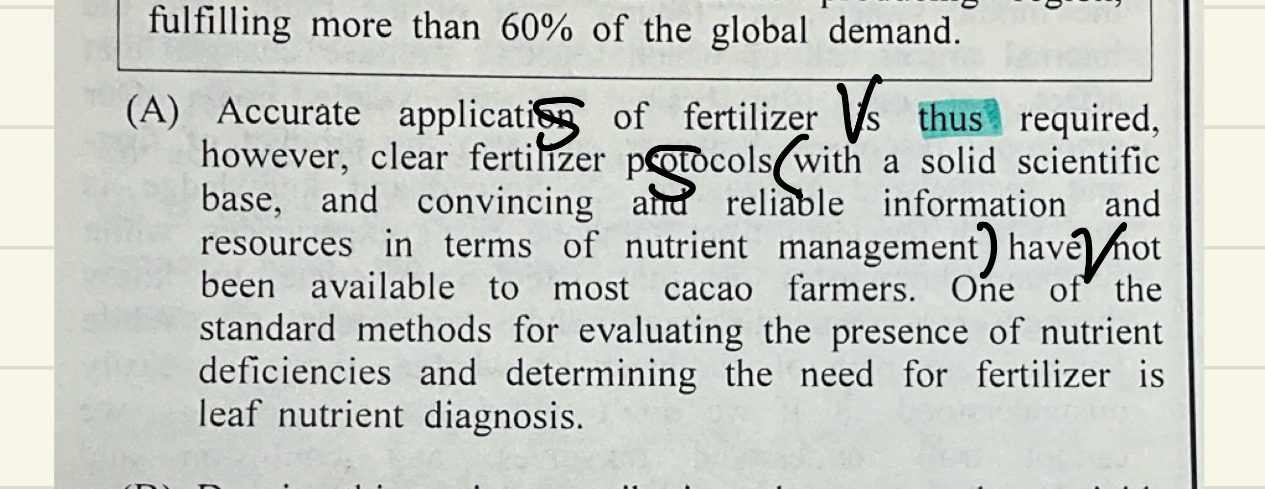 Accurate application 이 주어인 문장과 clear fertilizer 이 주어인 문장이 접속사가 없는데 어떻게 연결된 건가요?