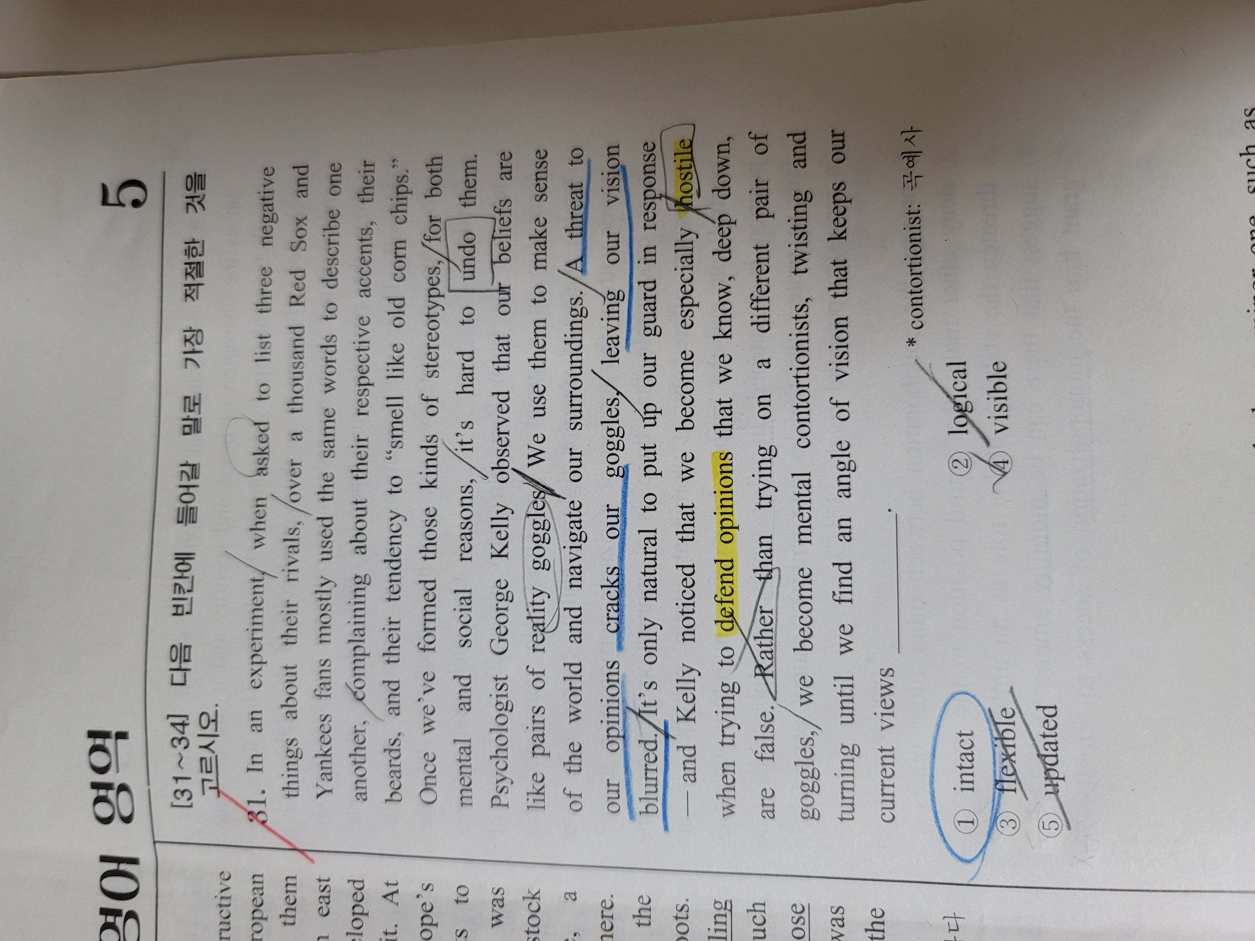 5번선지의 수정사항과 2번째 문장에서 흐름이 전환되는 부분에서 깔끔하게 독해가 되지 않아서