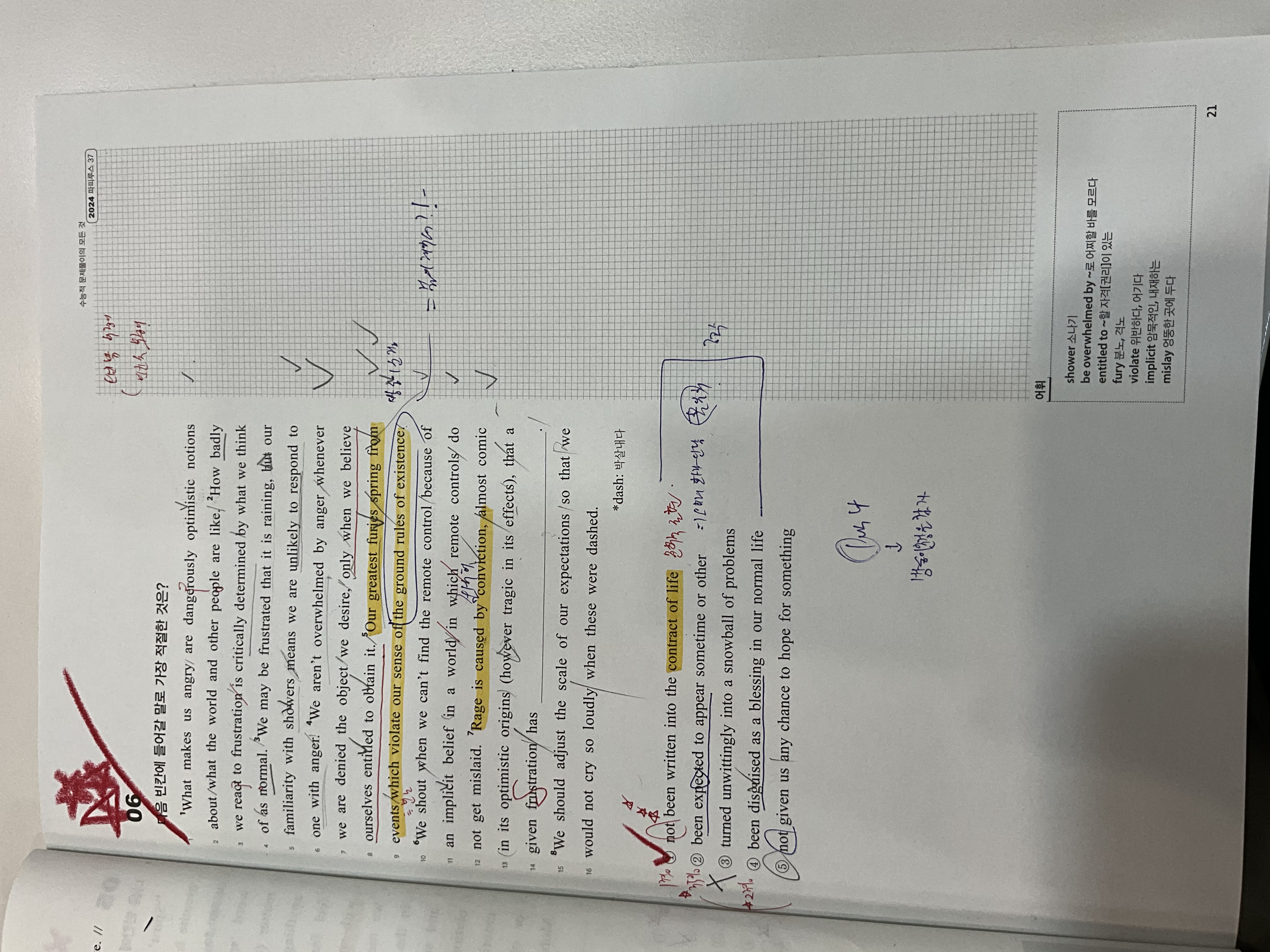 1:삶의 계약서에 적혀있지 않앗기에 당황하고, 예상치 못함 부분이기에 짜증난다 -> 고로 ok