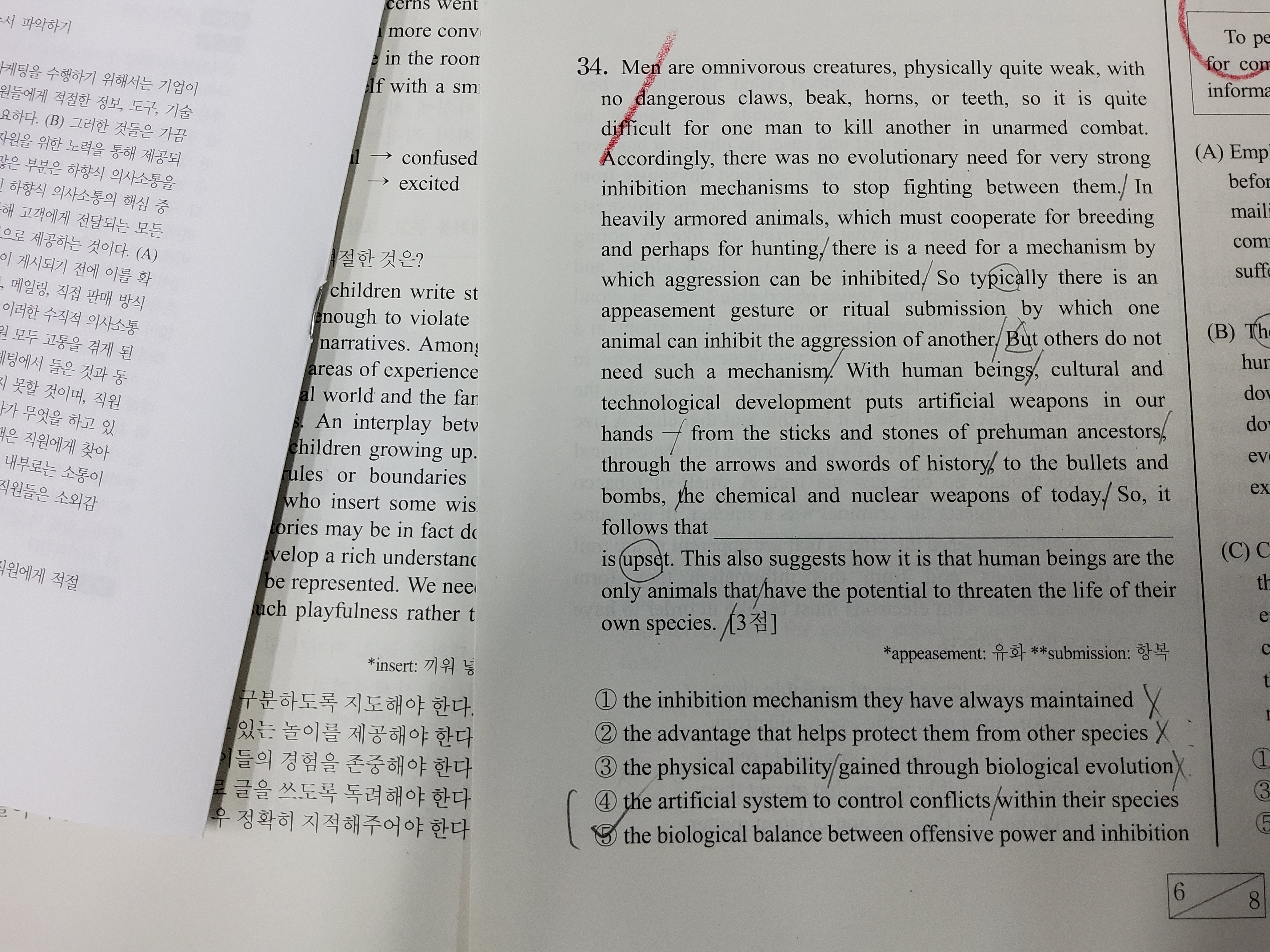 아무리 봐도 5번에 biological balance는 이상한거 같아서 4번을 정답으로 체크했는데 틀렸습니다