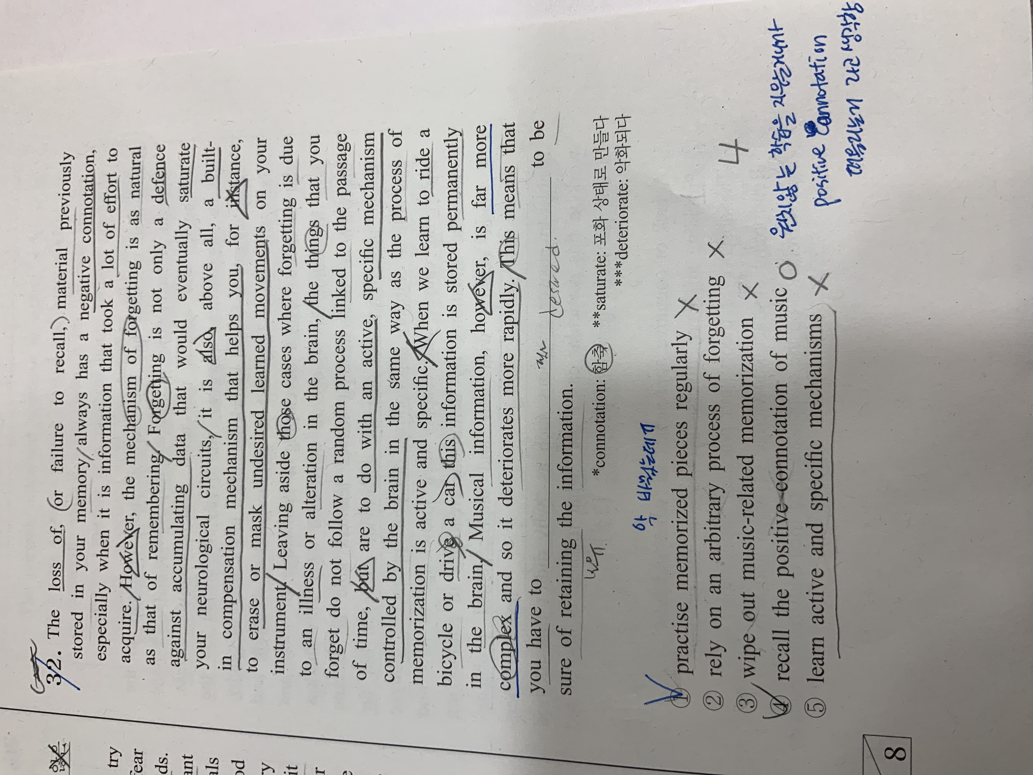 본문에서 기억을 지우는 건 undesired learned movements라서 지운다고 해서, 답으로 4번을 골랐는데 왜 안되는지 잘 모르겠습니다ㅠㅠ 그리고 답이 1번인데 전체 주제랑 너무 상관없지 않나요..?ㅠㅠ