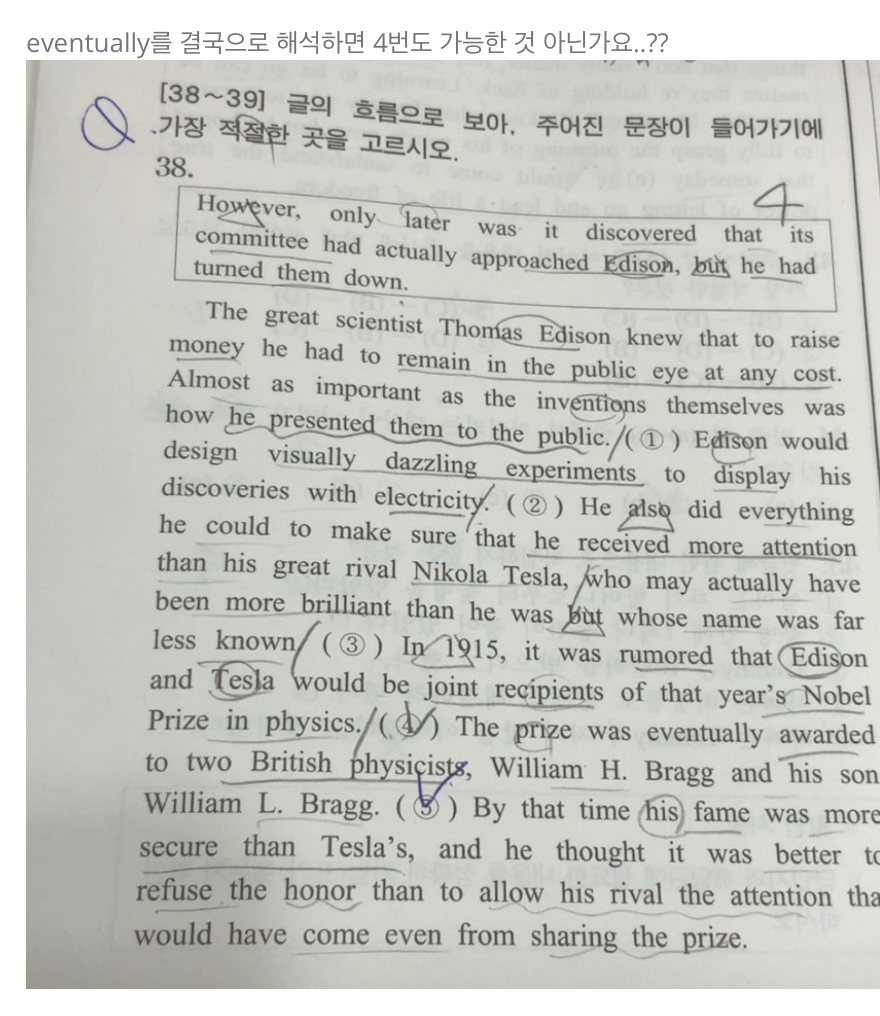 기적 모고 33회 39번에서 4번은 왜 안되는지 모르겠어요