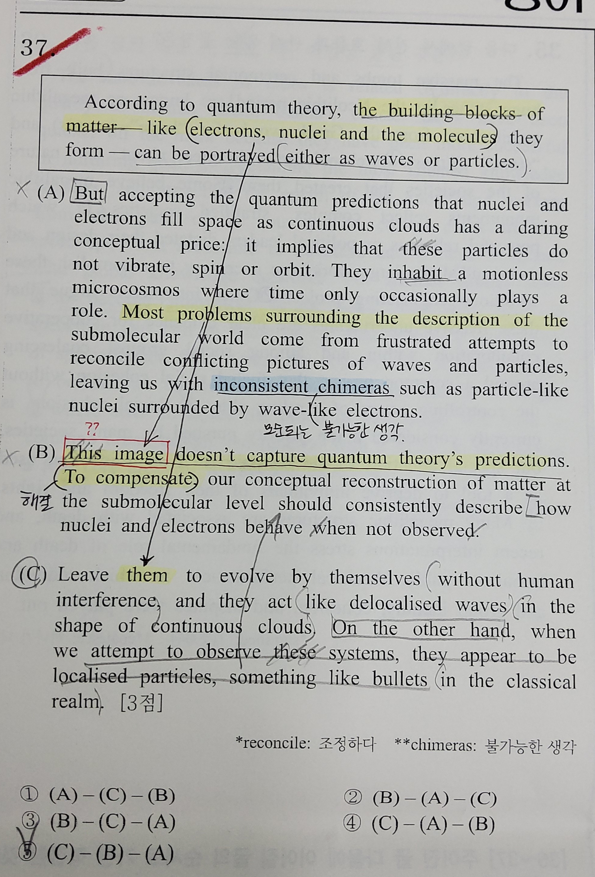 1번문장에서 주어진 문장은 비슷한 내용 좋은 흐름임을 캐치하여 2번으로 간다고 생걱하긴 하였으나 뒤에 2번 문장까지 좋은 흐름인지는 잘 모르겠습니다 주어진 문장과 2번 문장이 좋은 흐름인 이유가 뭔지 모르겠어요