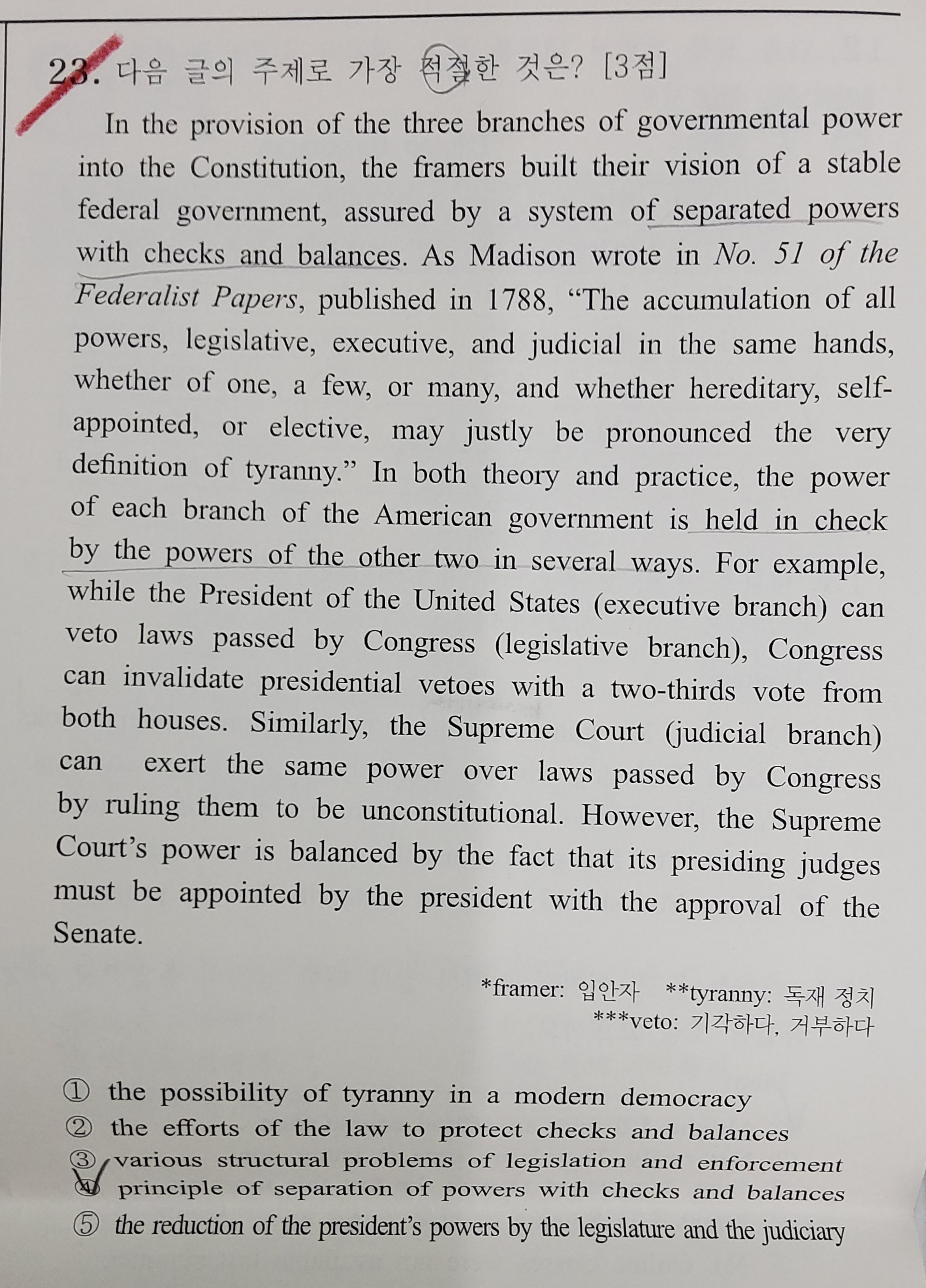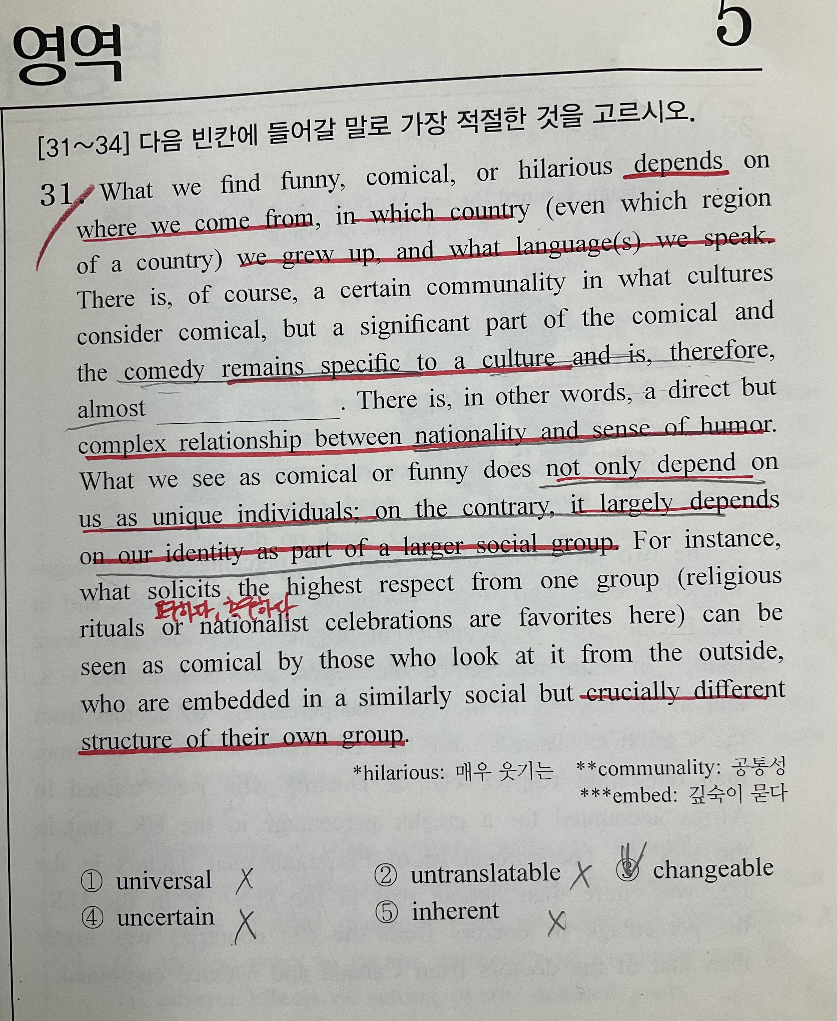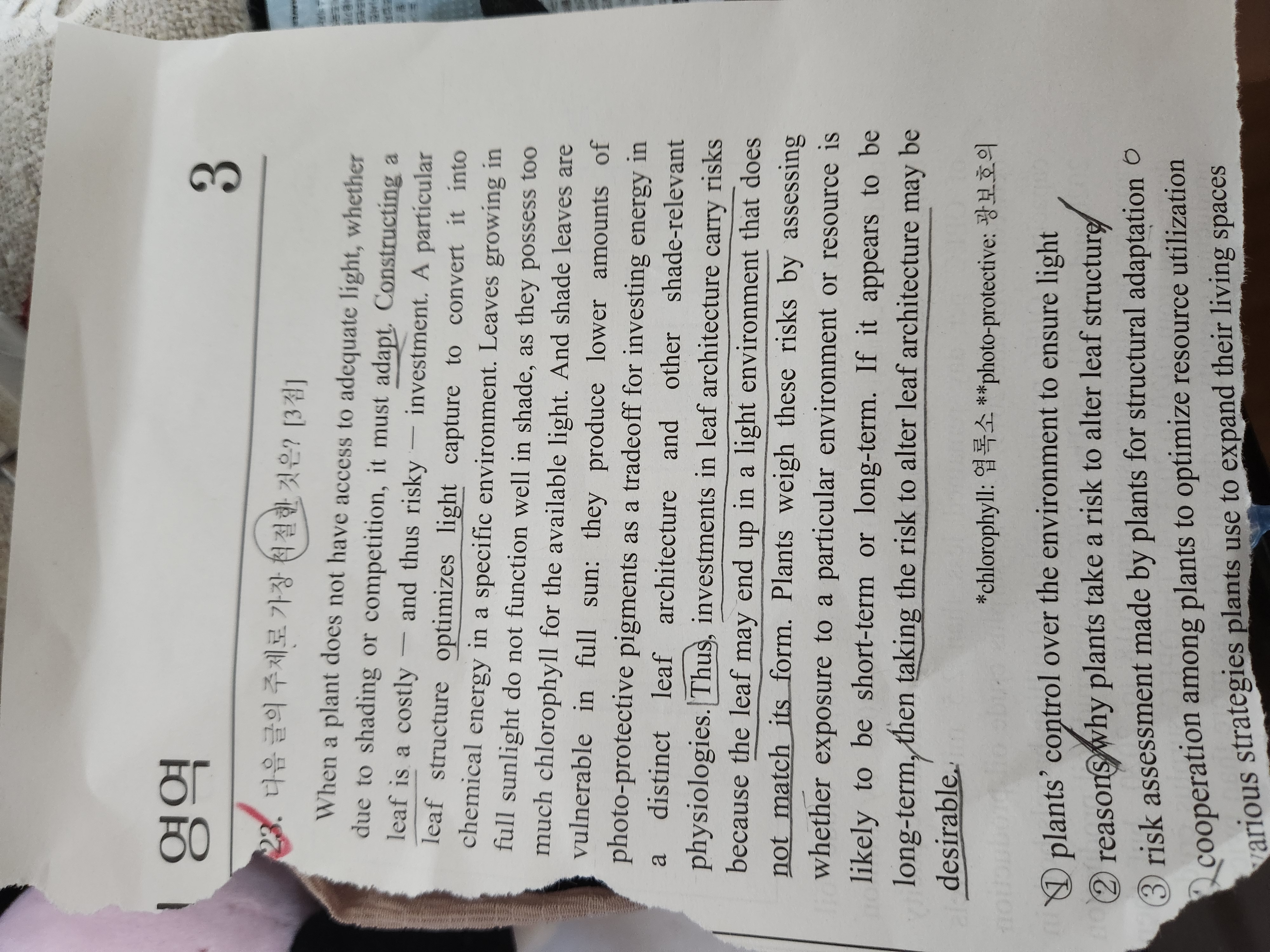 (앞에서 might, may 등으로 어느정도 답이 나왔다고 생각해서 밑줄 뒷부분은 전혀 읽지않고 바로 4번으로 갔습니다..ㅜㅜ 원래 제가 생각한 답은 ’남들이 자신의 행동을 어떻게 생각하는지 의식한다‘의 뉘앙스의 답이 있을거라 생각하고 선지로 갔는데 딱히 없는 것 같길래 다시 밑줄을 읽어보니 미래에 대한 ‘그늘’ (-)성격..? 남들이 나에 대해 어떻게 생각할지 모르는데(might, uncertainty) 어떻게 생각할 지 걱정(그늘)한다는 건가? 하고 4번선지로 골랐습니다. )