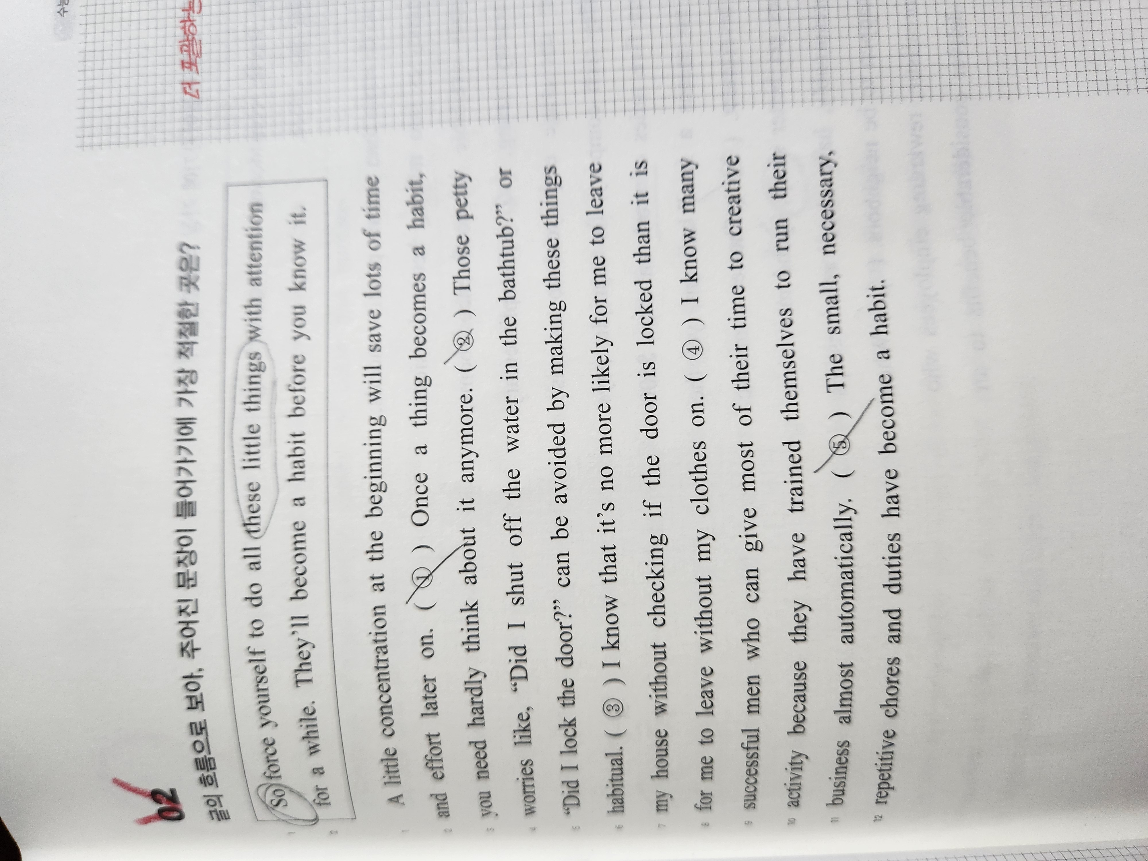 lock the door ~~~ 이 받아줄 수 있다고 생각하여 3번에 넣어도 흐름이 괜찮다고 생각했는데 정답이 안될까요 ?