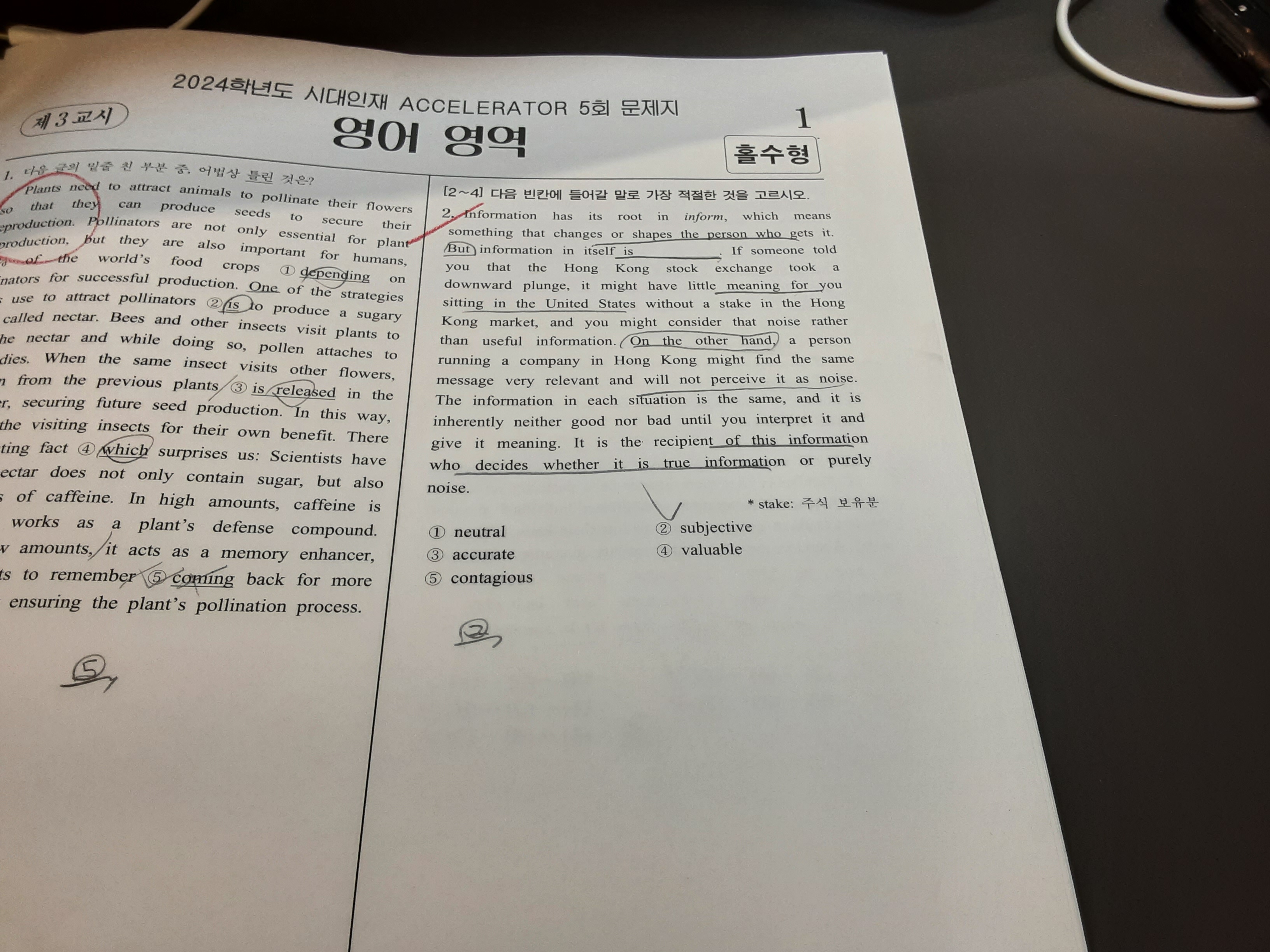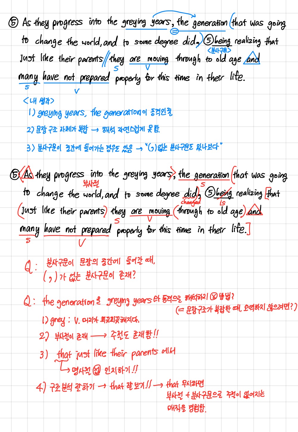 또, 5번 문장 구조 분석을 (빨간색) 제대로 한 것이 맞는지도 확인해주시면 감사드립니다!