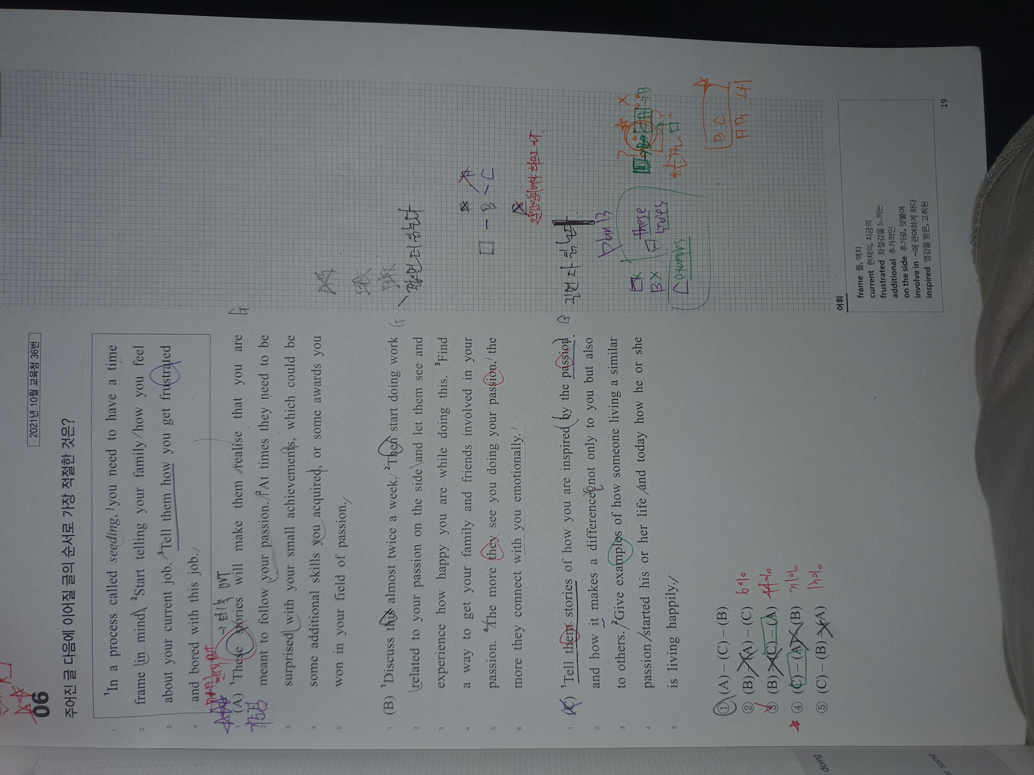 Box에서 a파트 가 안되는 것 또한 these, 곧 단,복수 때문에 out이라고, 구채적으로론 box 에 있는 현재 직업에 어떻게 느끼는가, 좌절감을 느끼는 2개의 이야기는 전체흐름상 좋냐 라는 것에 대해서 흐름은 좋지만 단,복수 때문에 안된다고 하셨는데