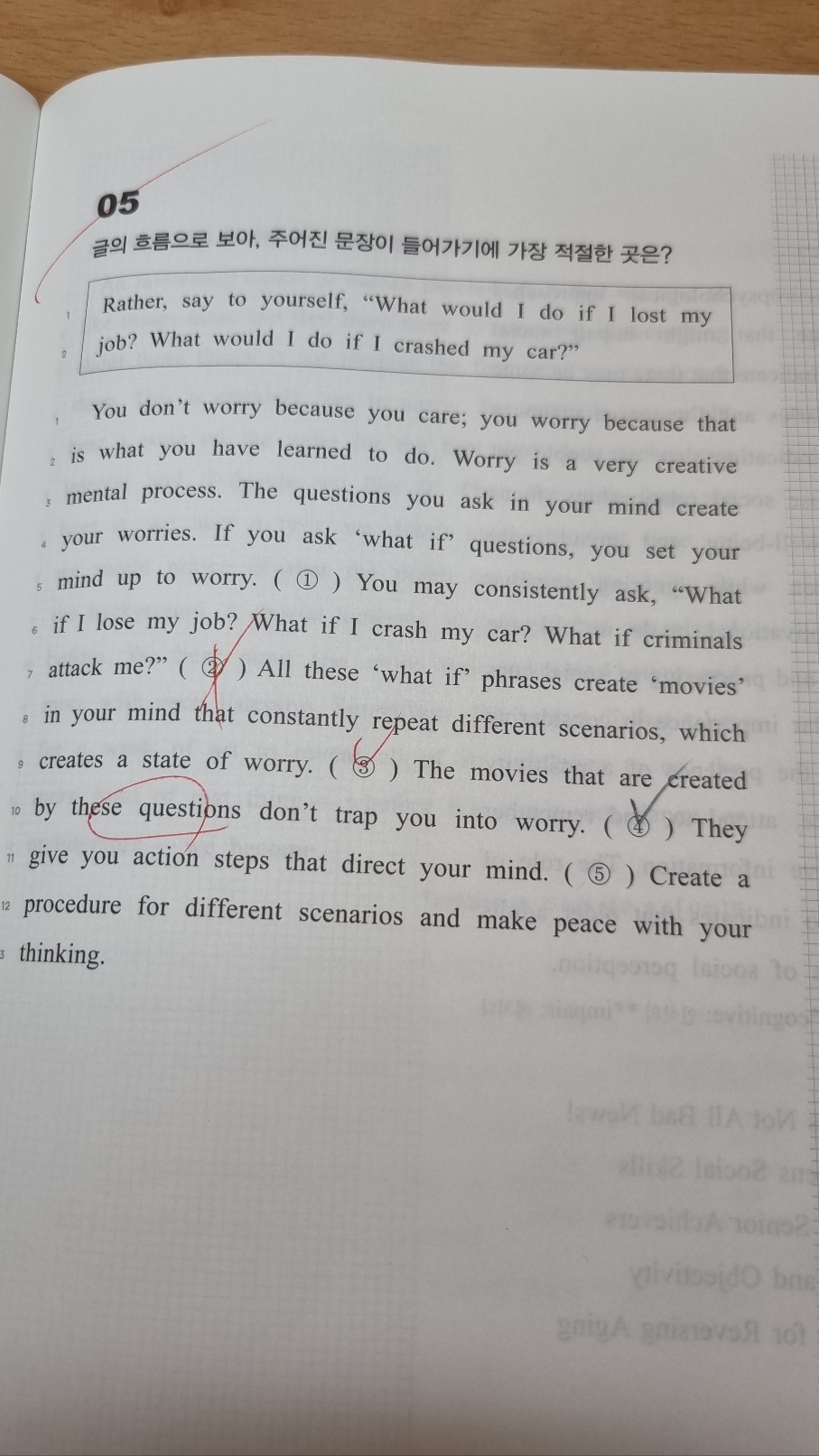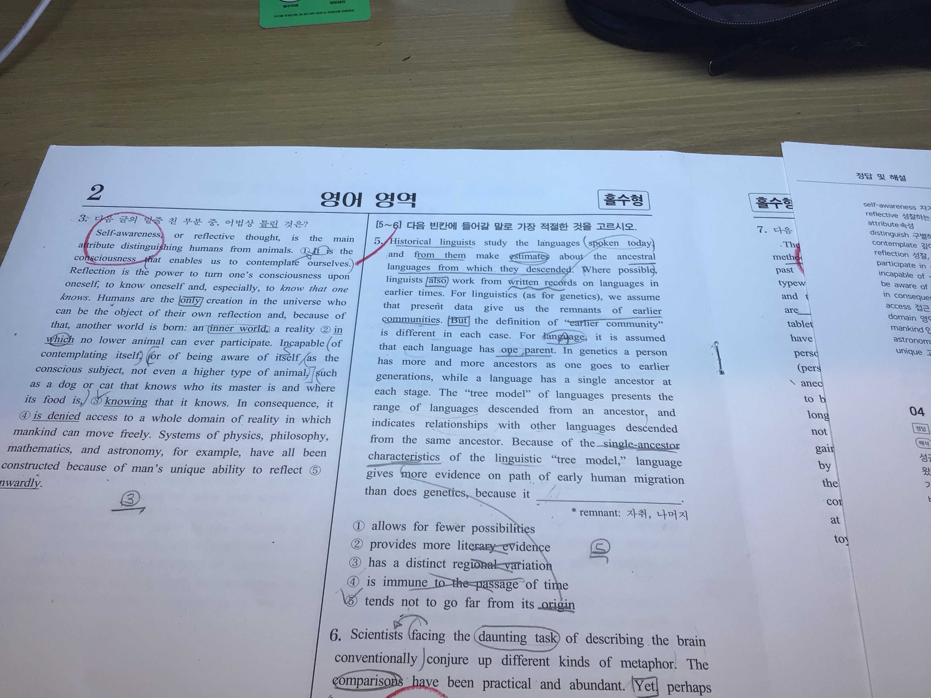 5번 문제에서 1,5만 남기고 1번에는 possibilities를 5번에는 origin을 검색어로 잡고 빈칸 이전 문장에서 그 단어를 찾아봤는데