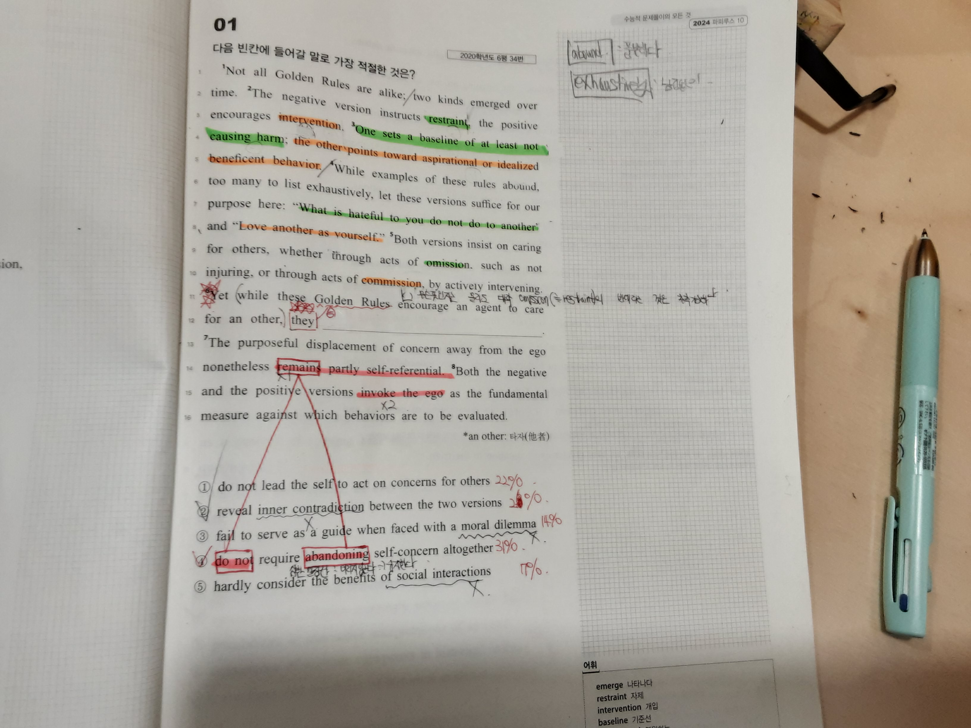 10주차부터 합류한 신입생(현역입니다!)입니다. 문제를 풀 때 제대로 구문독해가 되지 않는 경우가 많아서 약간 느낌적인 느낌으로 지문을 해석하고 풀다보니 컨디션이 좋으면 1등급 중반 안좋으면 2등급 중후반(고3 모의 기준입니다)을 왔다갔다 합니다....그래서 선생님께 물어보니 단어를 좀 더 외우자고 하셨는데 단어를 다 아는상황에서도 뭔가 해석의 방향성이 다르거나 주어가 길어지면 제대로 처리하지 못하는 경우가 50%이상이여서 이런건 어떻게 훈련해야 할지 모르겠습니다.....계속 문제를 풀면서 해설지랑 비교하다보면 되는 걸까요....그리고 선생님께서는 끊어읽기나 그런 걸 안하시는 것 같아서 그런데 어떻게 통으로 문장을 해석하는지 궁금합니다...!