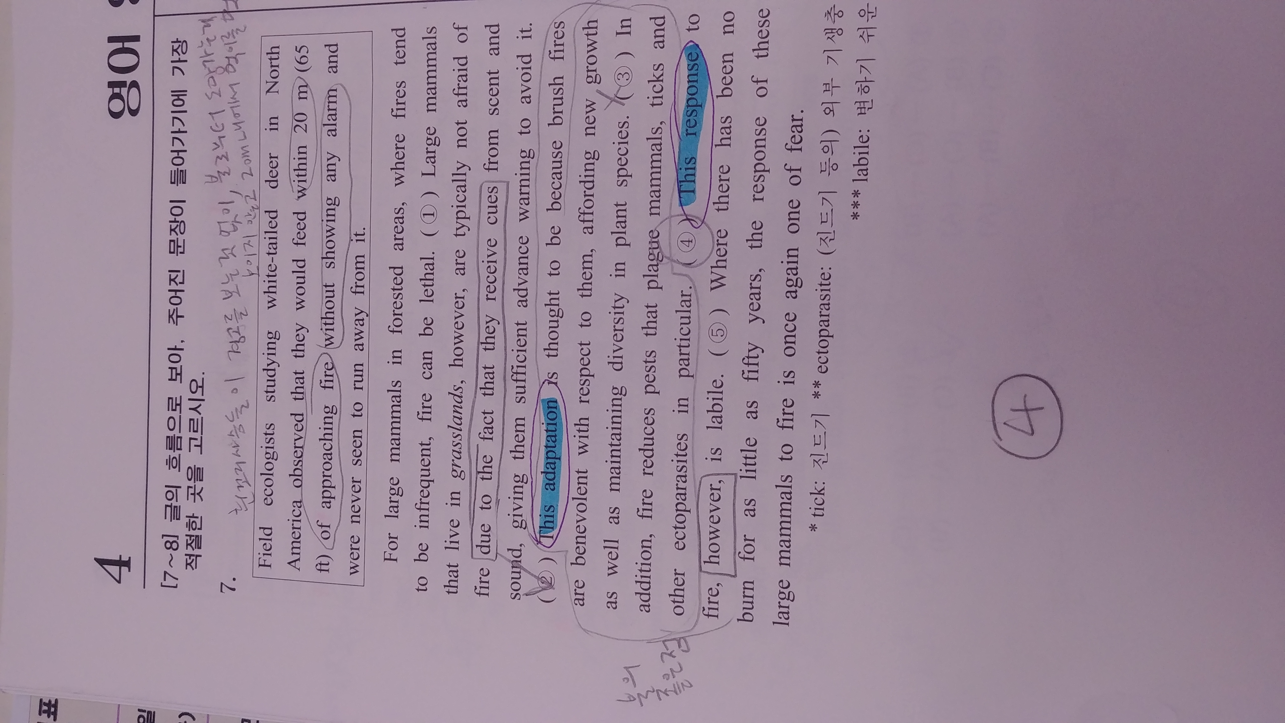 보기가 동물이 불로부터 안 도망간다는 내용인데, 2번 this adaption이랑 4번 this response 둘 다 같은 현상을 가리키고 뜻도 비슷하지 않나요? 어떻게 다른 건지 궁금합니다.