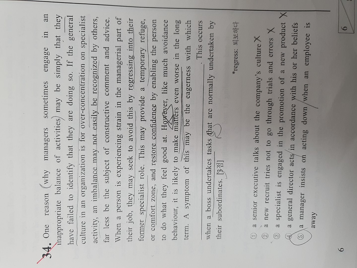 34번 : 선지 소거 후 4번과 5번 선지가 남았는데 4번이 답이 안되는 이유가 궁금합니다. 정답 근거도 궁금합니다.