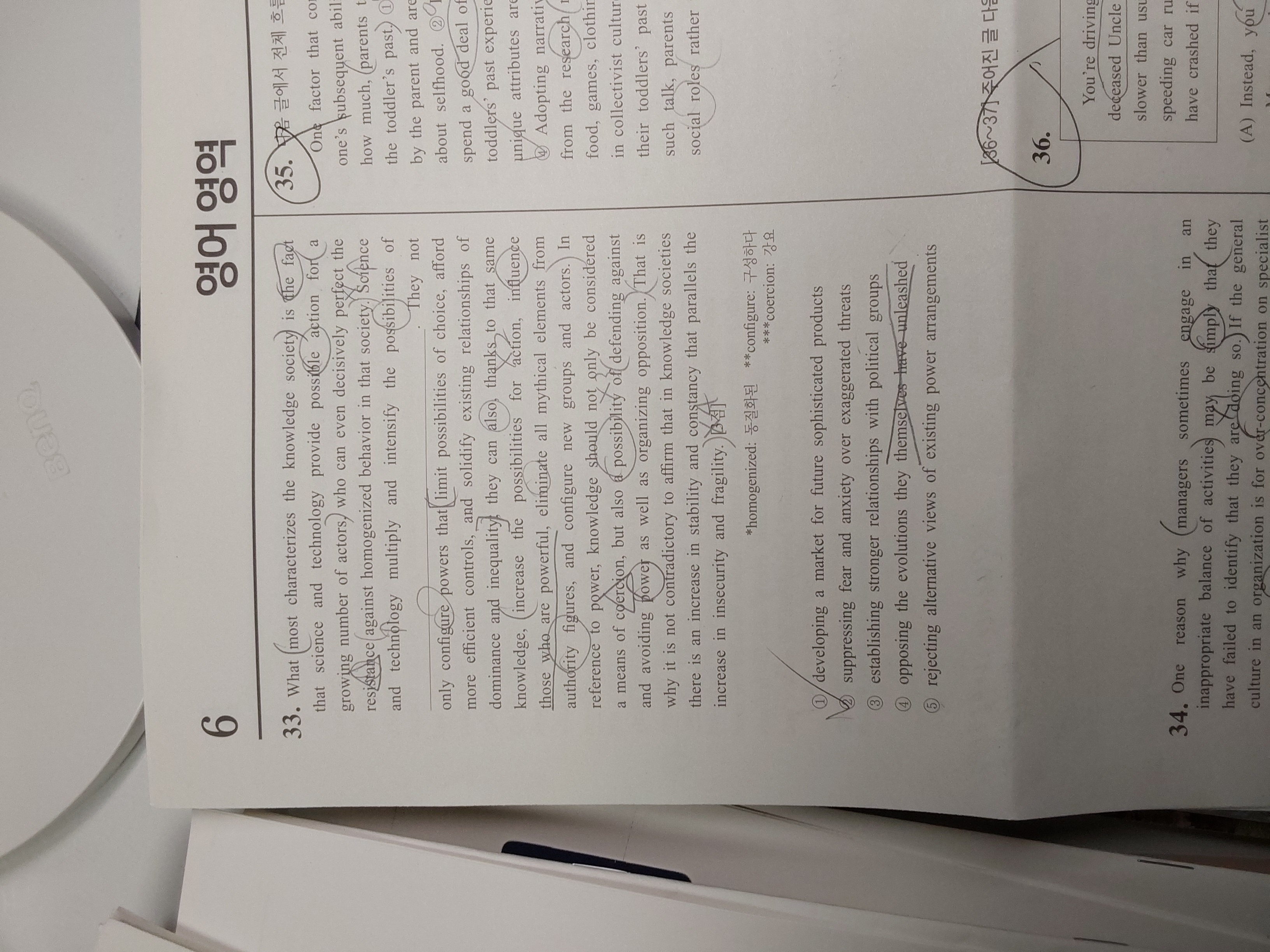 33번 : 선지 소거 후 4번과 5번 선지가 남았는데 5번이 안되는 이유가 궁금합니다. 정답의 근거도요 !