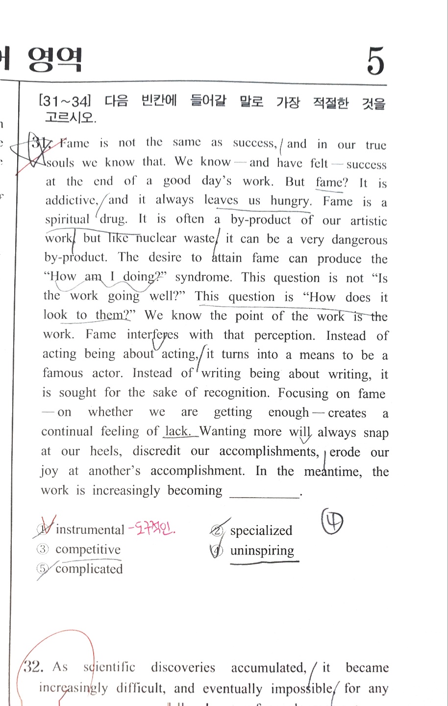 지문에서 fame이 부정적인 뉘앙스로 표현된다는 개괄적인 맥락은 이해했습니다. 그런데 왜 지문의 내용(fame)이 instrumental로 함축(?)되는건지 모르겠어요!