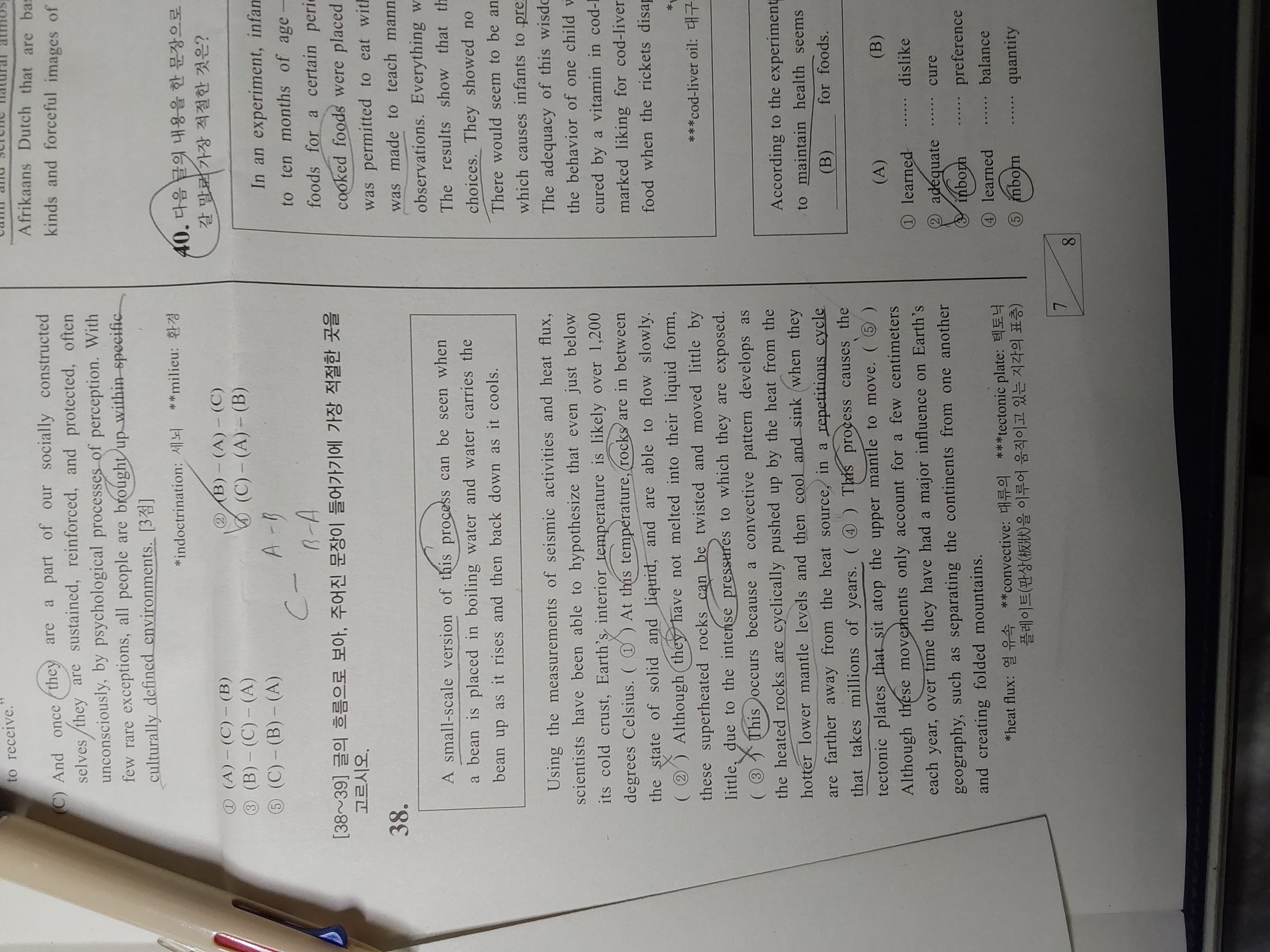 small scale version of this process와 bean, boiling water에 상응하는 자연현상이 앞에 전부 나오는 건 5번인데 왜 4번이 답인 건지 궁금합니다