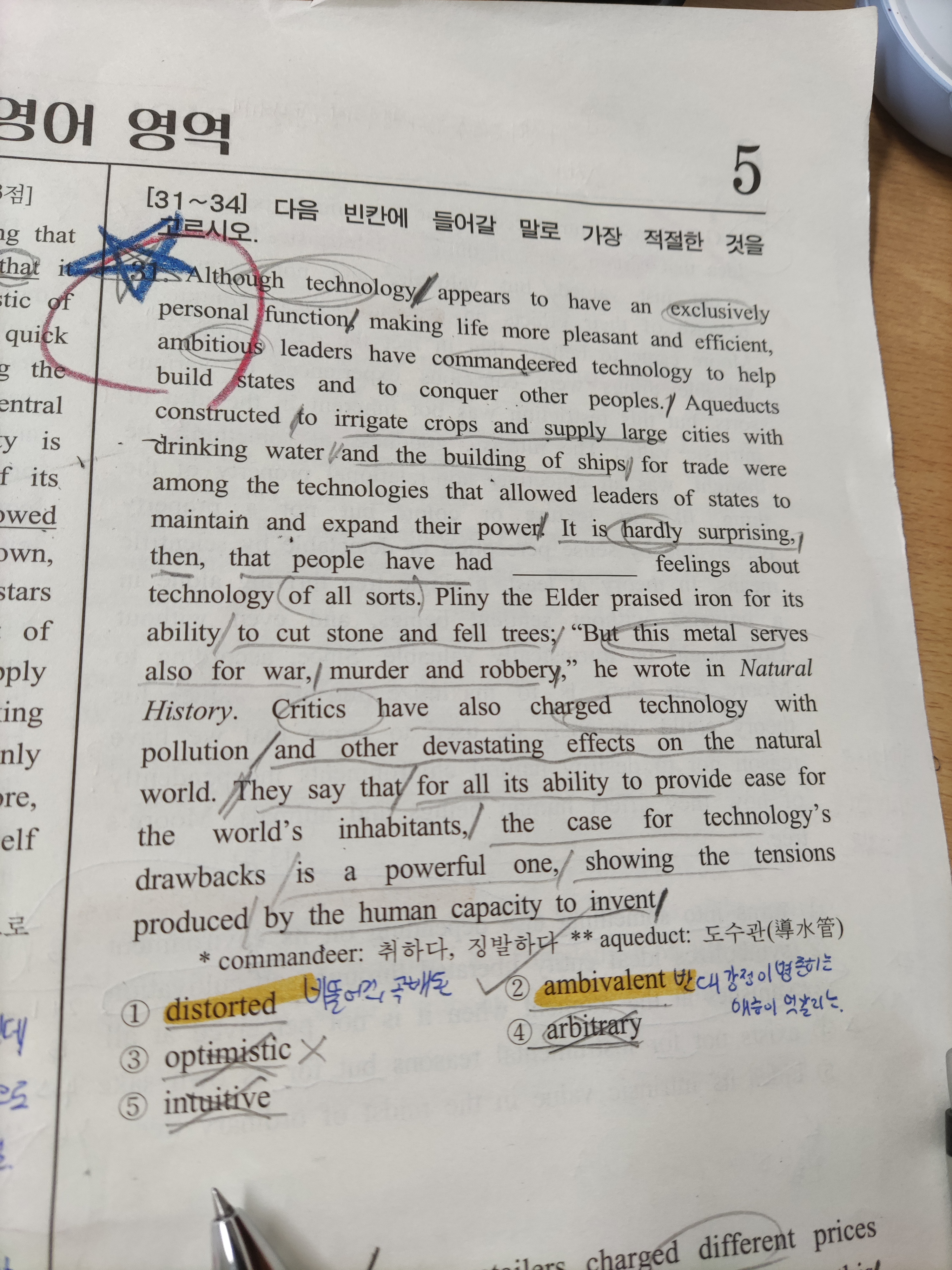 선지 2번 , 5번 둘 중 고민하다가 5번 골라서 틀렸는데