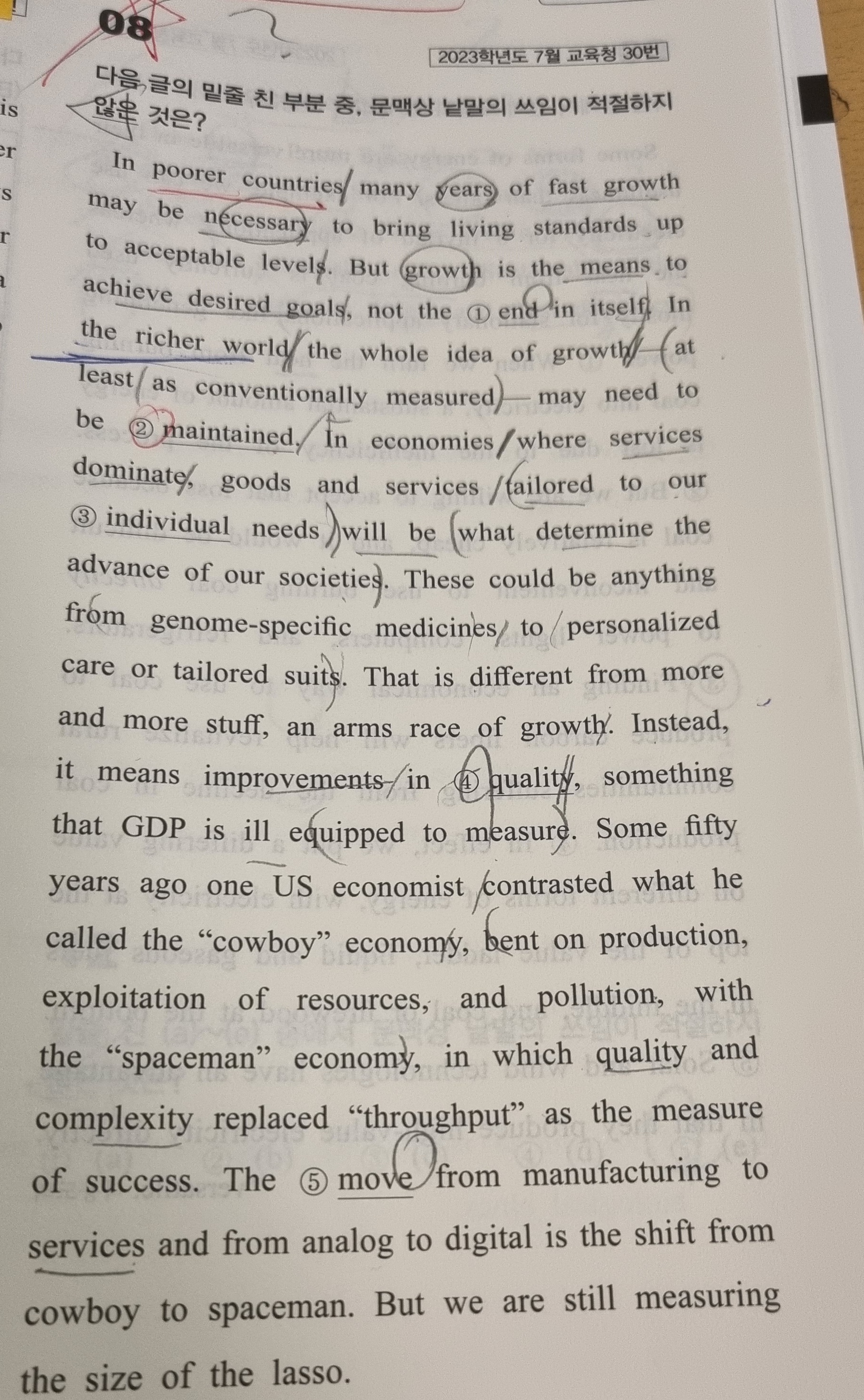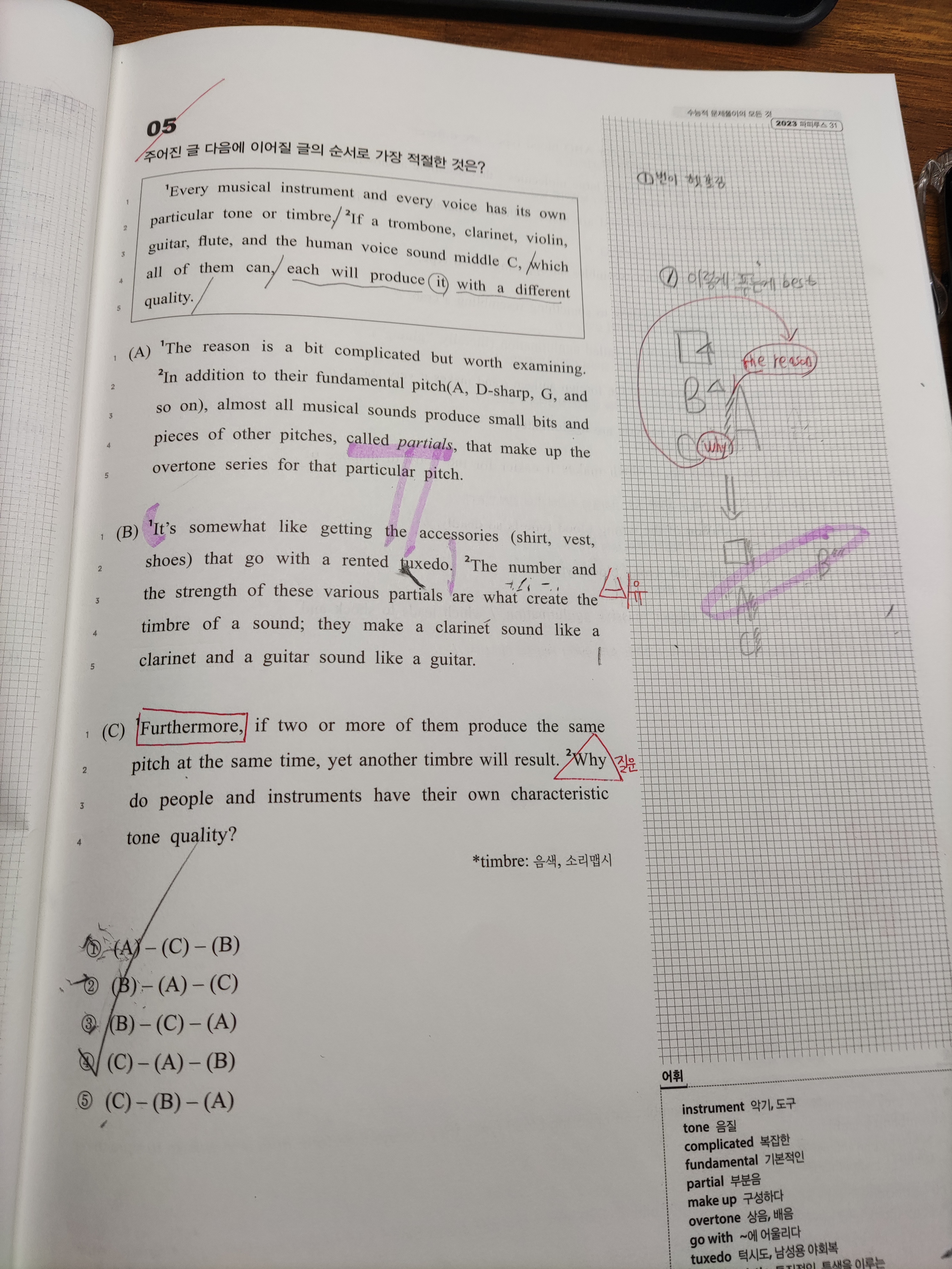 5번선지가 분사구문이라 are이 아니라 being이 들어가야한다고 합니다.