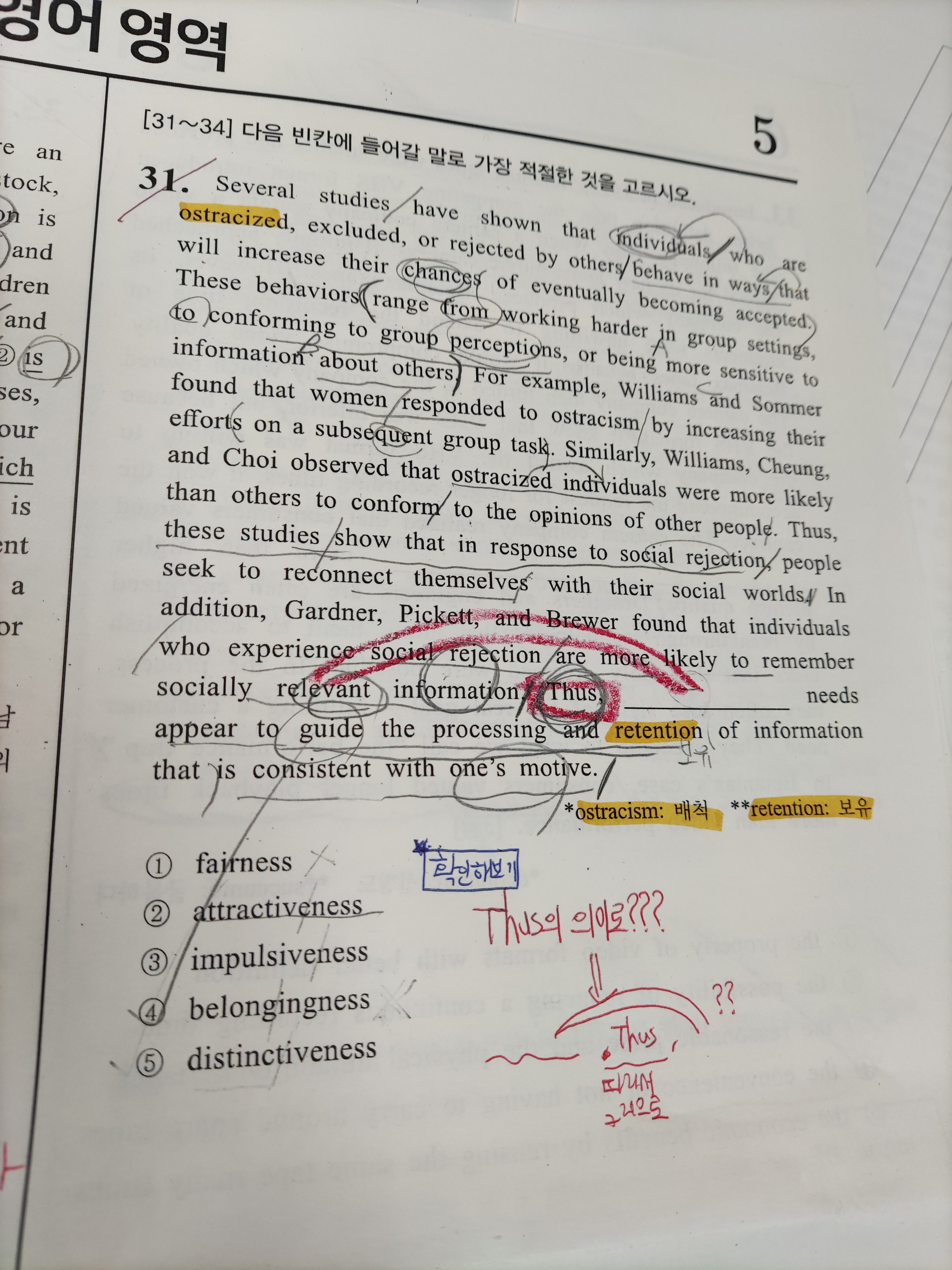 Thus의미로 앞문장과 빈칸 문장 비슷한 단어 찾기 했는데 이렇게 해도 되나요?? 원래 thus가 인과일때 쓰는 거 맞죠?