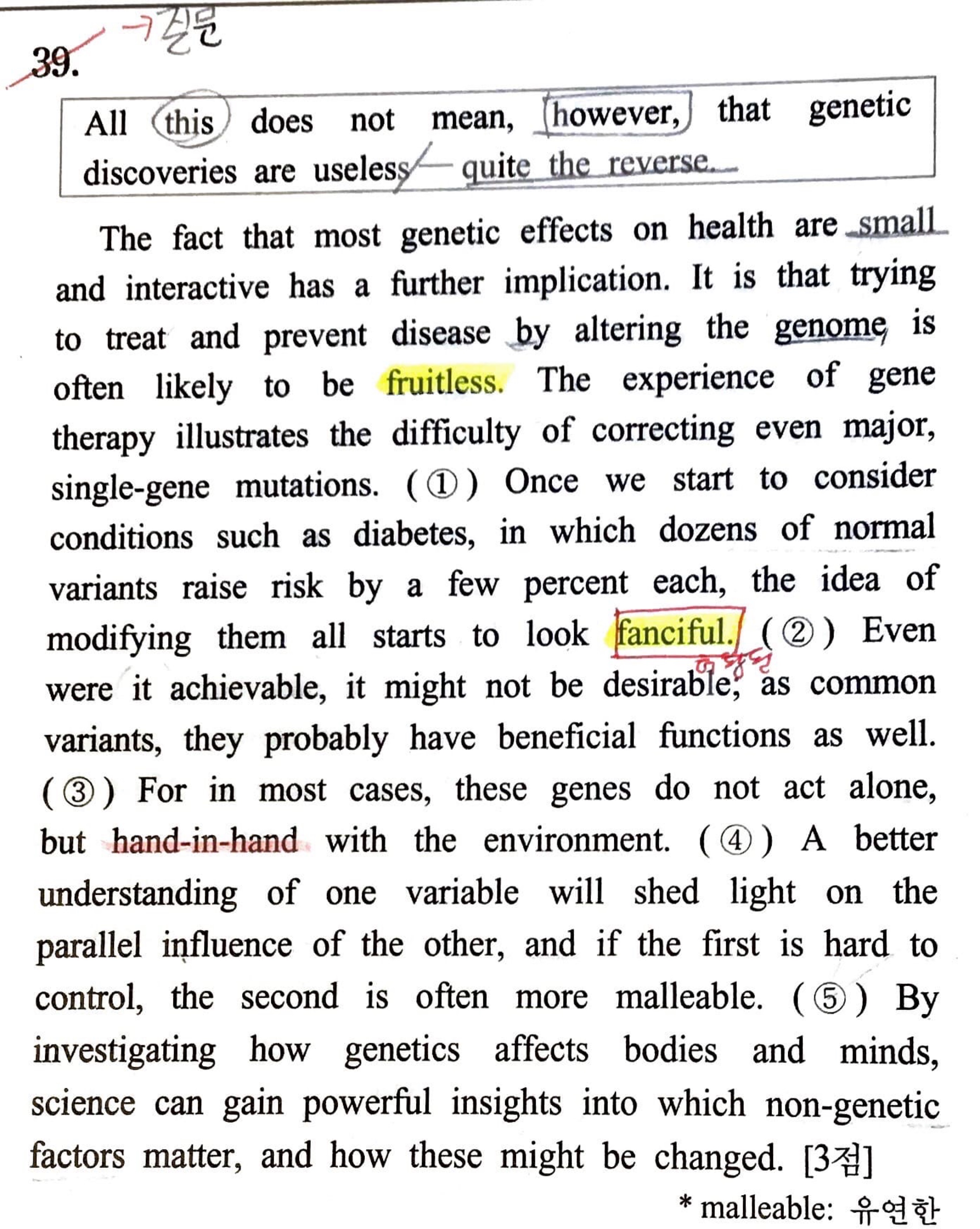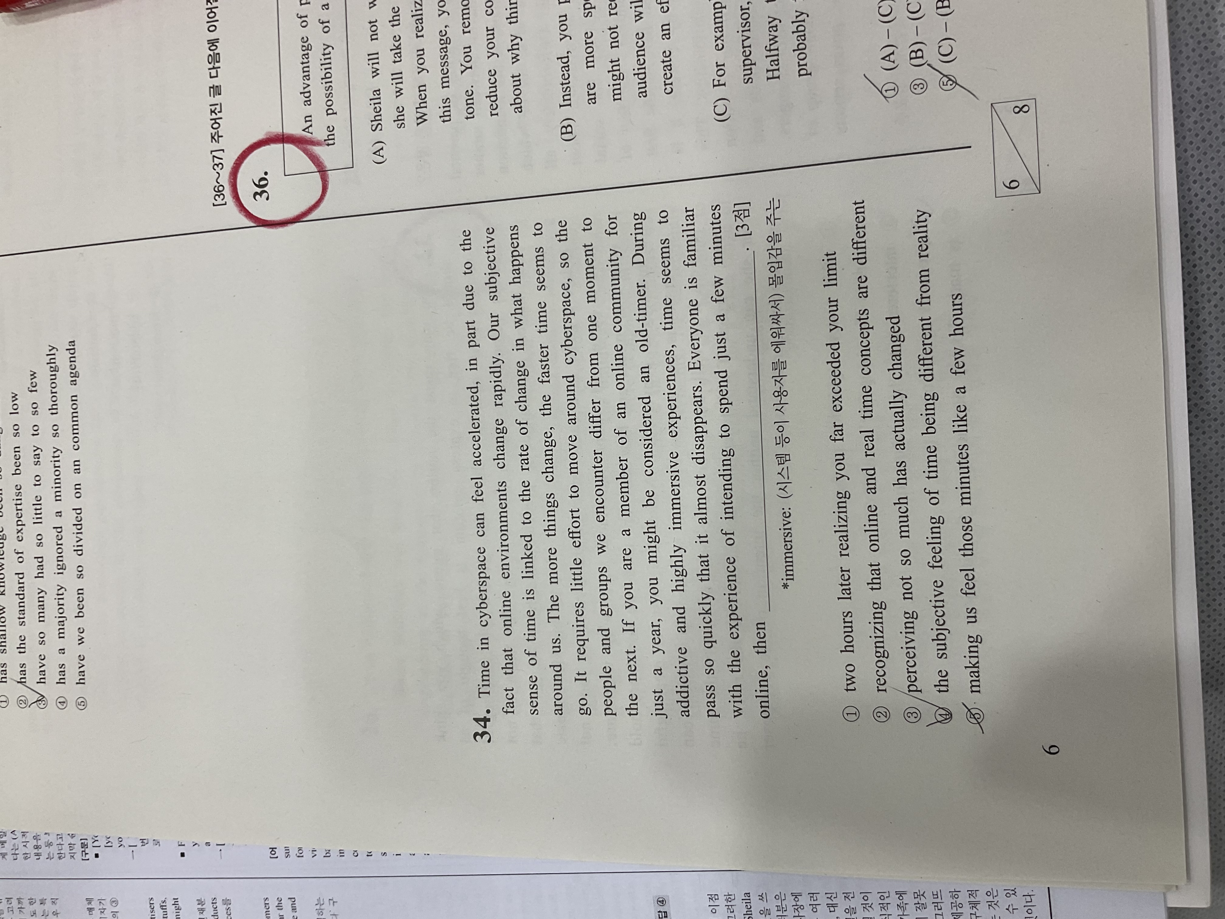 출처를 안썼네요. 시대인재 서바1회 39번입니다. 3번 문장이 정답인데, 여기서 정답이 되는것은 내용상의 단절감때문일까요?