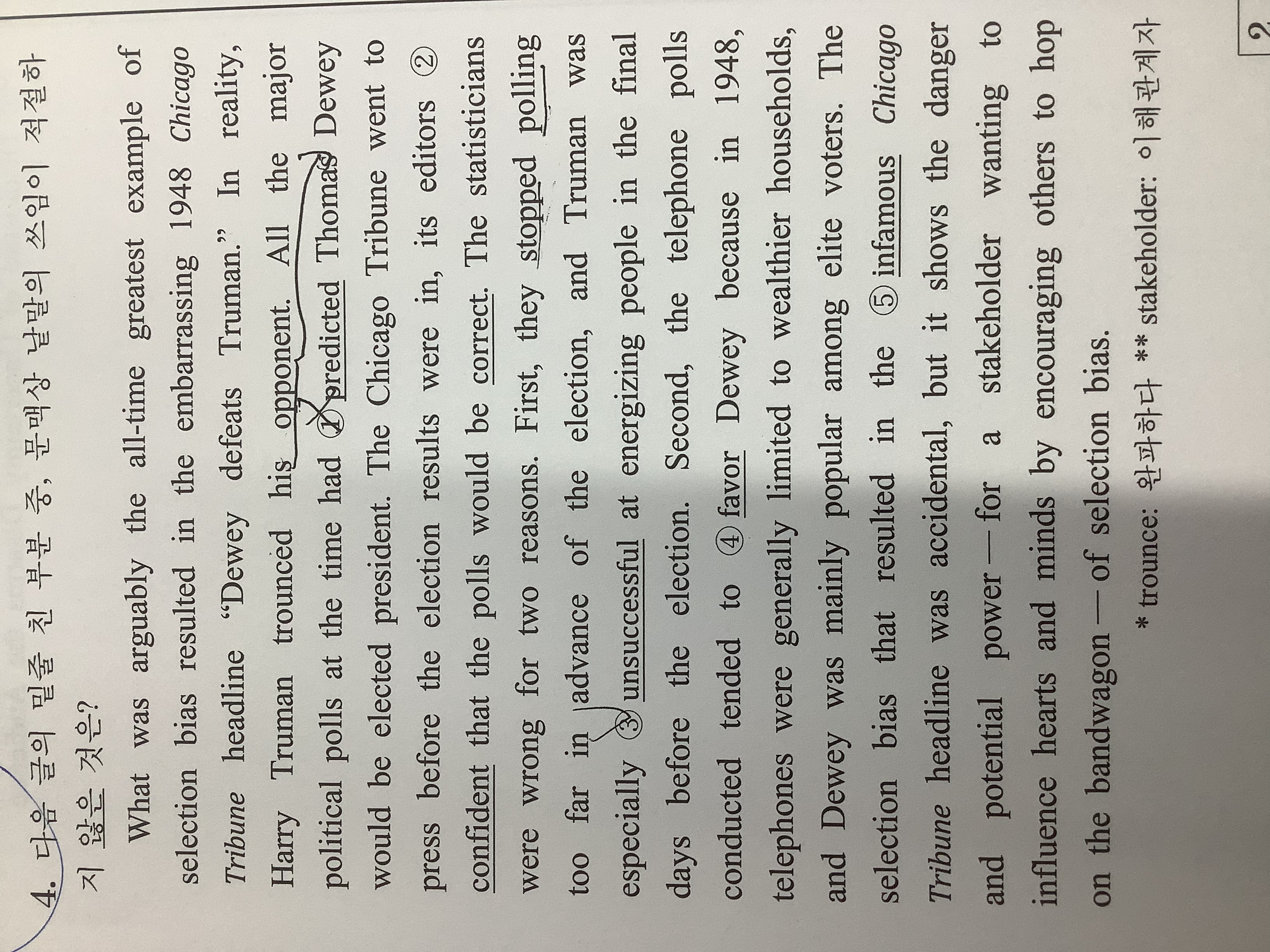 브릿지 8회 4번인데 2번 선지에 밑줄이 두 곳 쳐저이ㅛ는데 이렇게 두개가 쳐질수 있나요..??