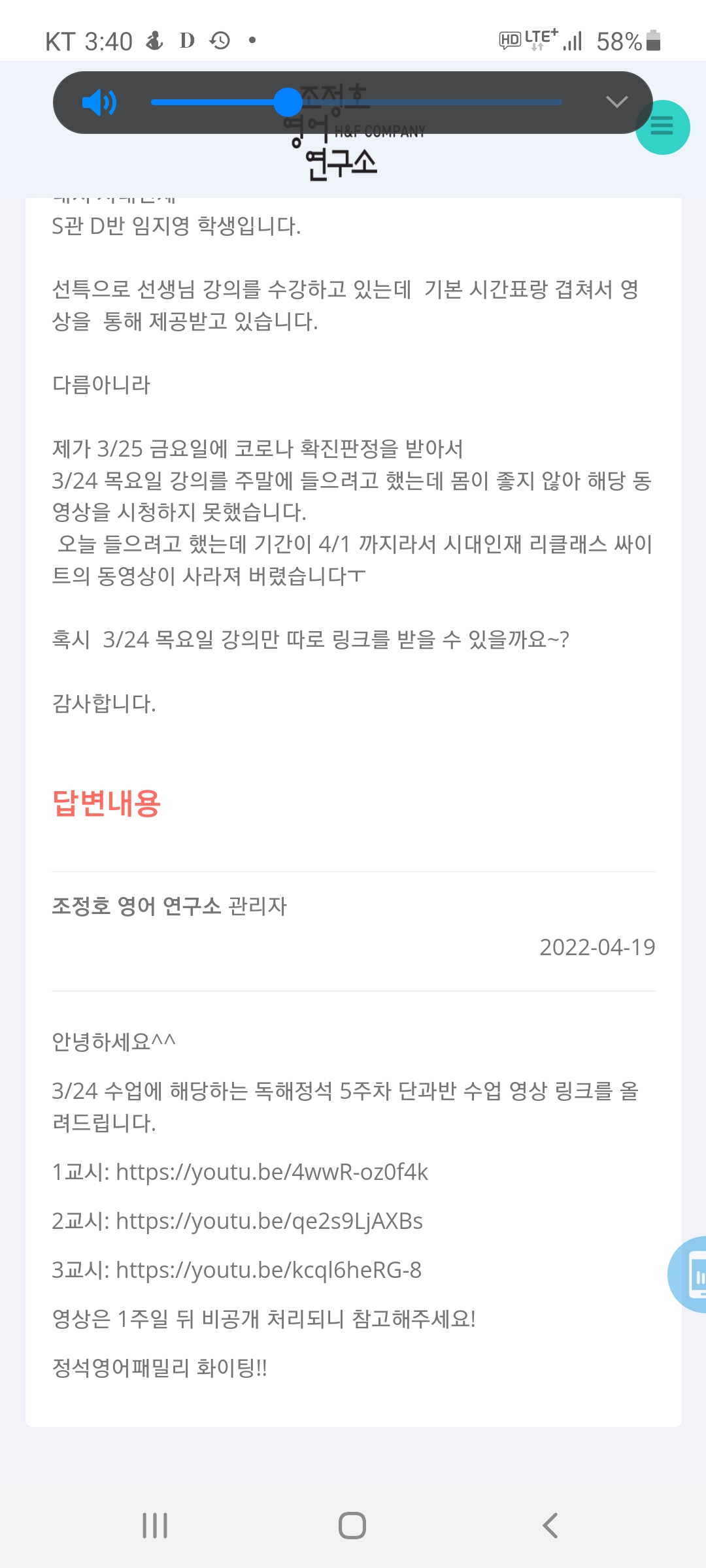 아래와 같이 답변을 받고 해당 링크에 들어갔는데