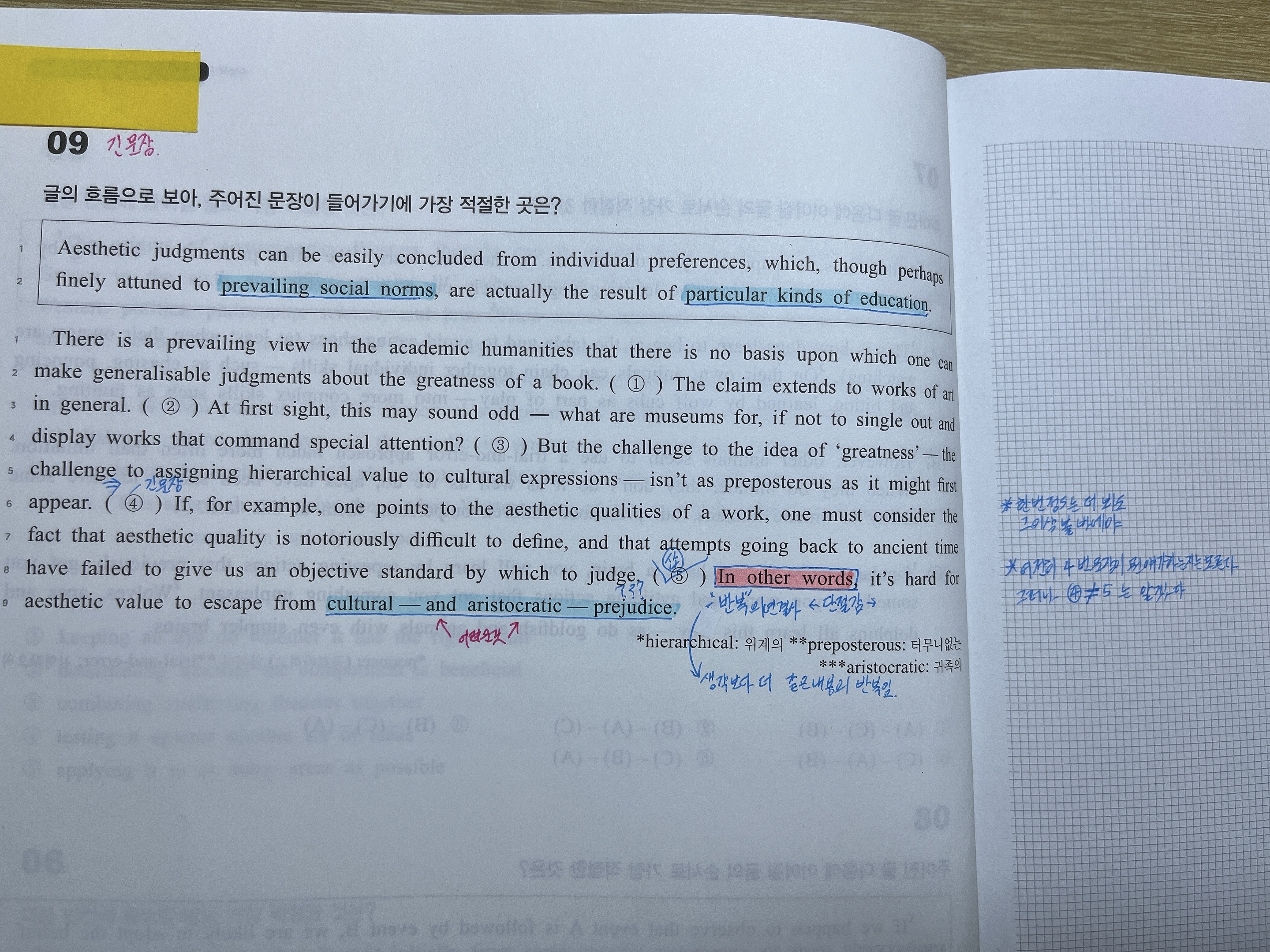 그래서 제 입장에선 완벽히 번역되어야만 단절감을 찾을 것 같다고 느껴지는데 선생님이 번역이 본질은 아니다 라고 하셨지만 그래도 어느정도 해석은 된다는것을 조건으로 말씀하신것 같은데 완전한 번역은 아니지만 단절감을 느낄 수 있는 그런 해석 즉, 4번과 5번이 다른내용이다 정도는 알 수 있는 해석을하려면 4번 문장을 어떻게 접근해야 할까요?