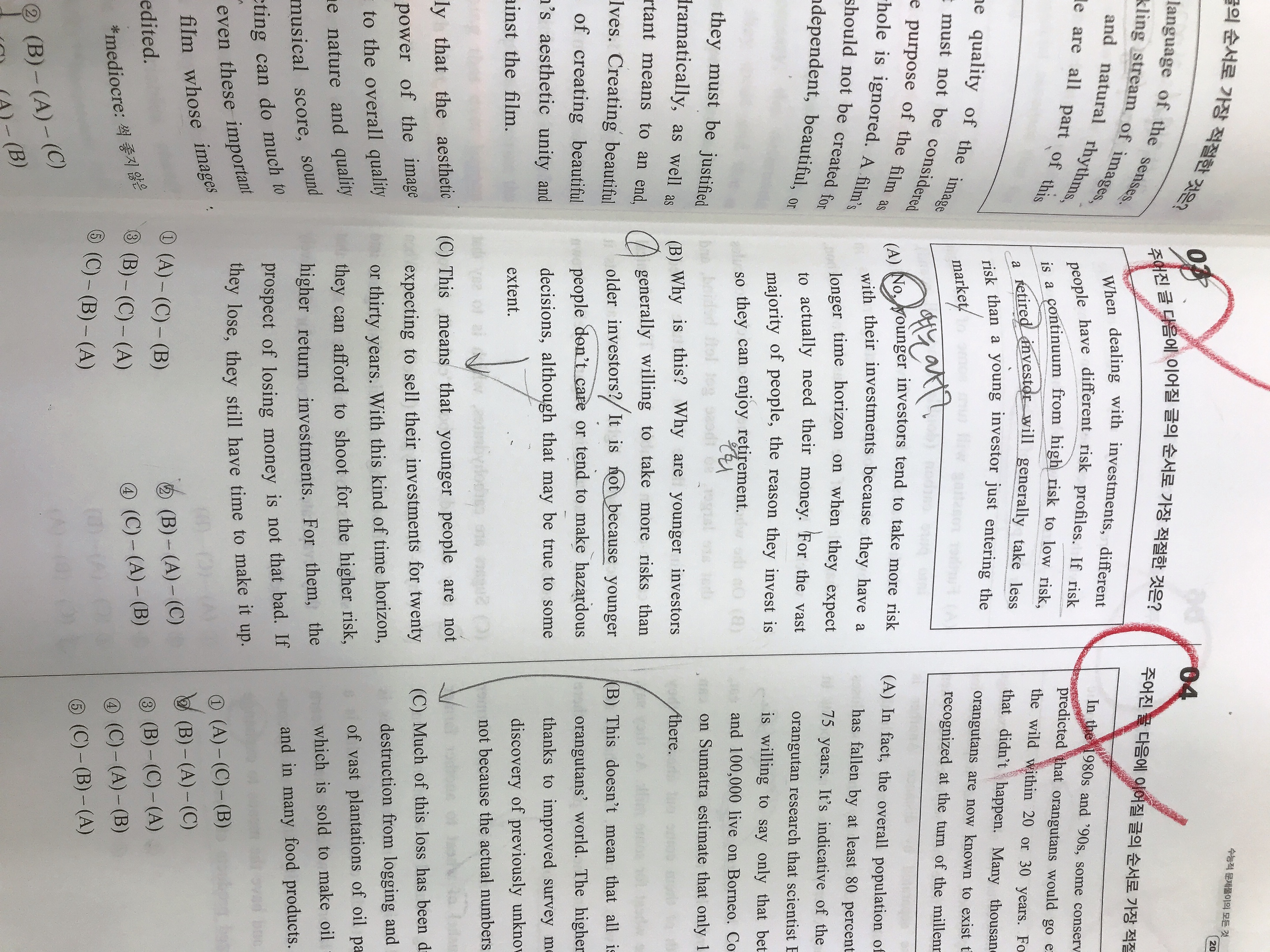 기적 모의고사 omr 마킹시에 문제에 나와있는 번호처럼 omr지 18번부터 번호대로 마킹해야하나요 아님 그냥 1번부터 순서대로 마킹해야하나요?